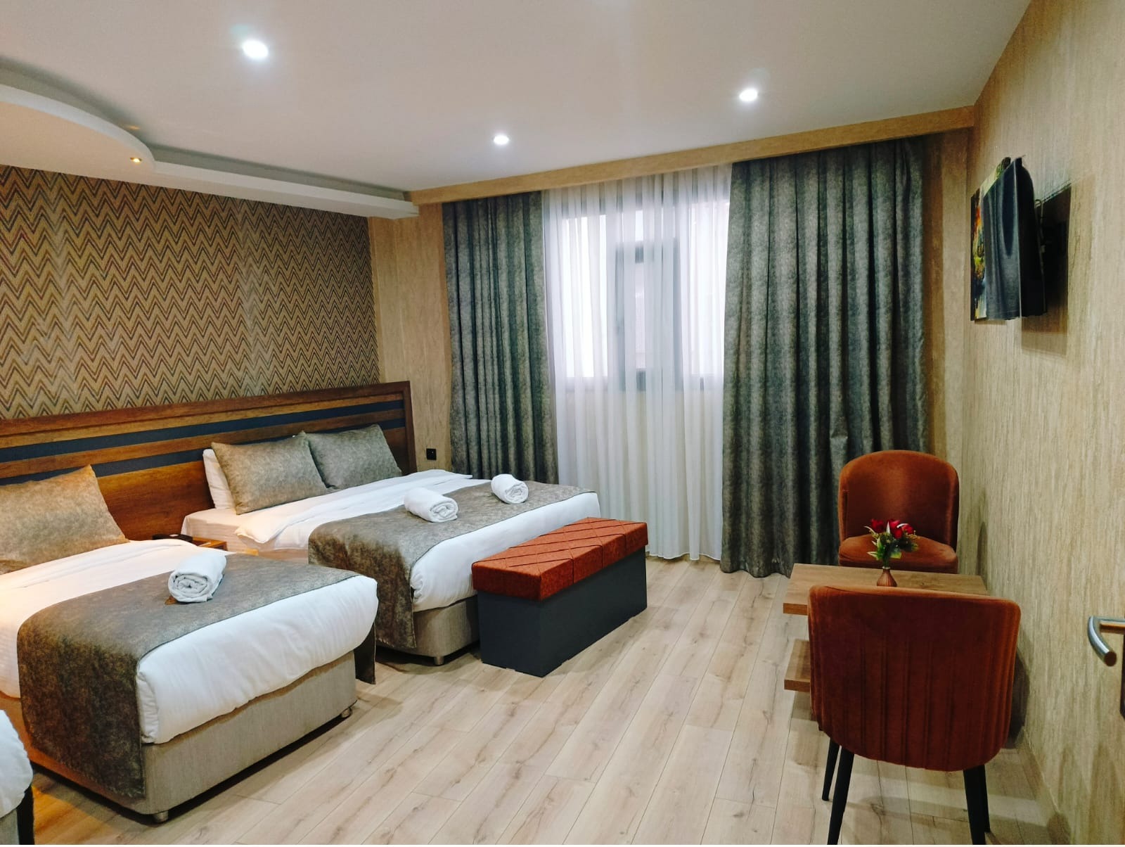 Vizyon Park Otel'de tüm odalarımız klima, LCD TV, uydu kanalları, duş, saç kurutma makinesi gardırop, tuvalet, ücretsiz Wi-Fi hizmeti, havlu, ses geçirmez pencere, tam kapanan perdeler, masa, rahat ve ortopedik yataklarıyla konforunuz için donatılmıştır. Odalara ilk varışta mini bardan su ikramımızdır. Zengin açık büfe kahvaltı siz konuklarımıza ücretsiz sunuluyor.