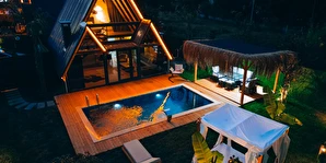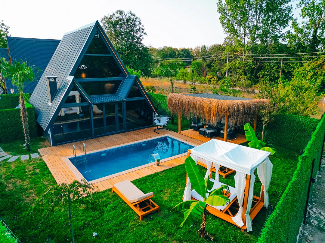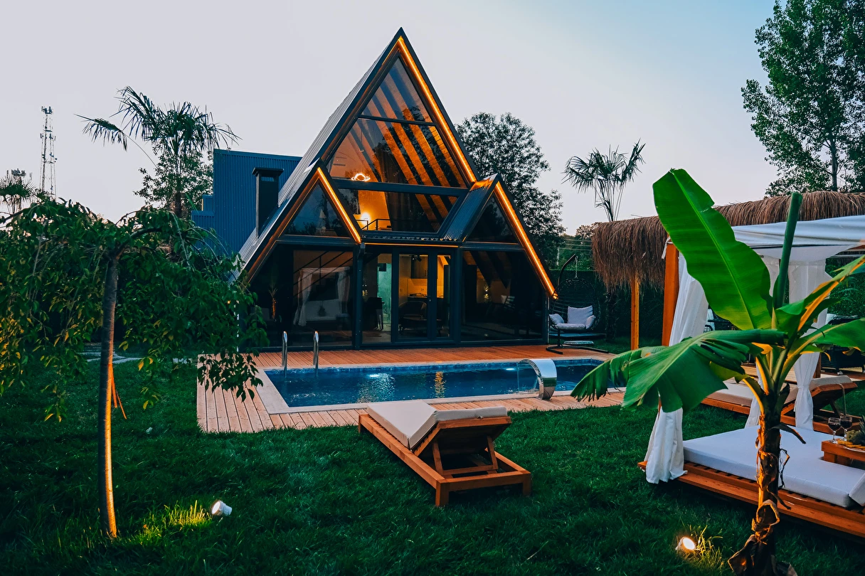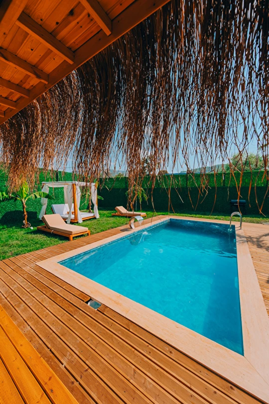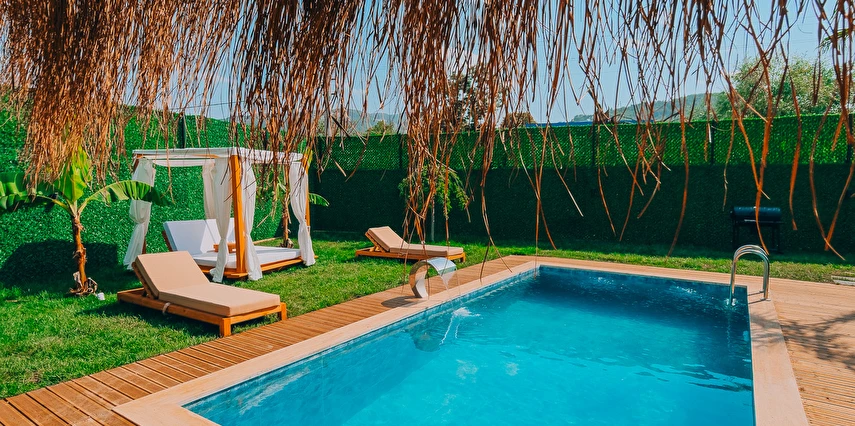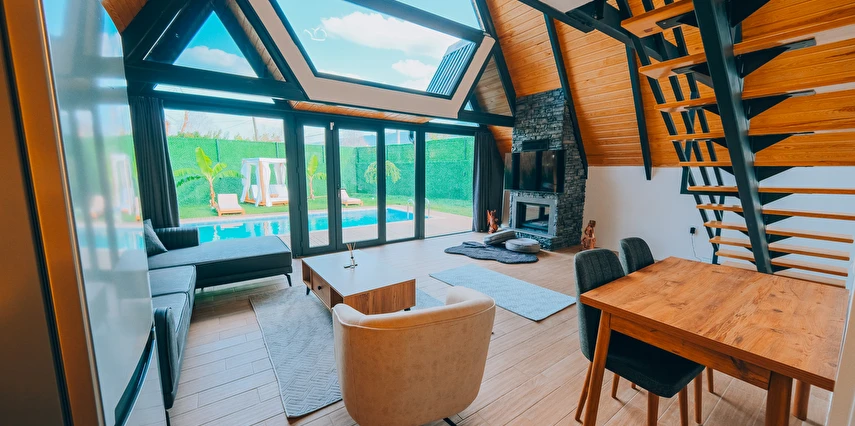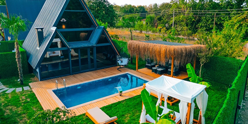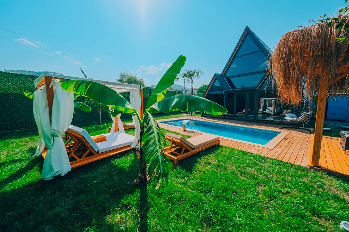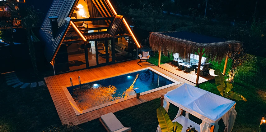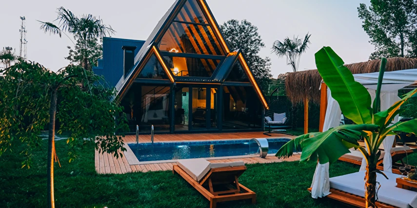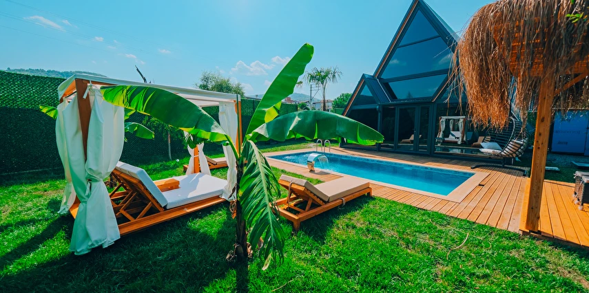 Doğanın kalbinde, özel havuzlu ve jakuzili bungalov keyfi.