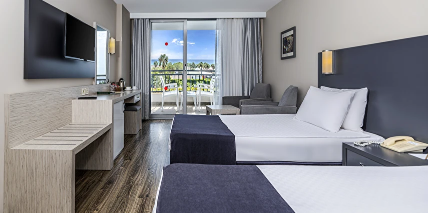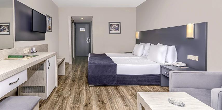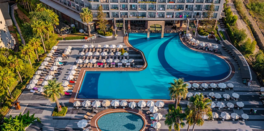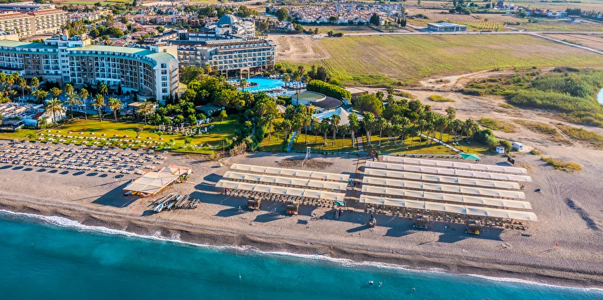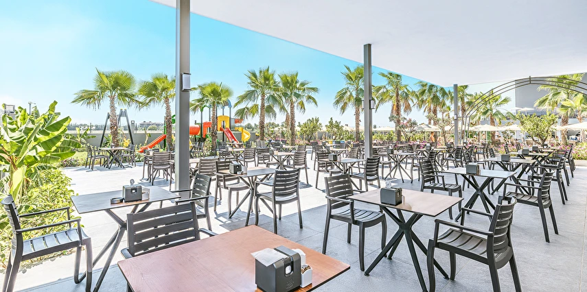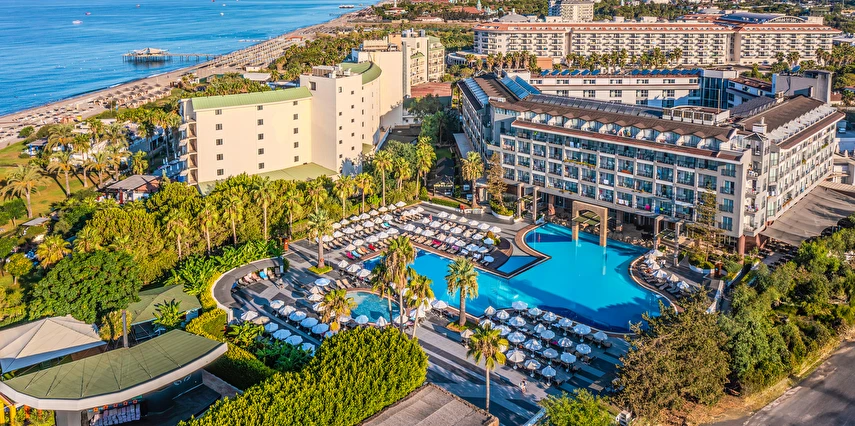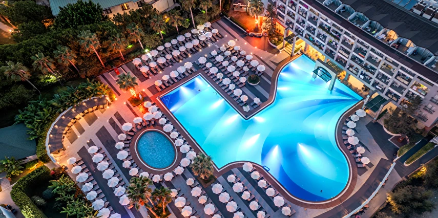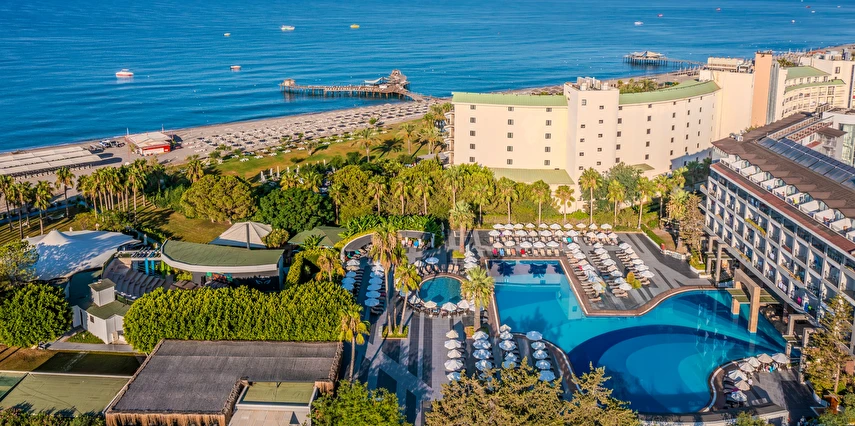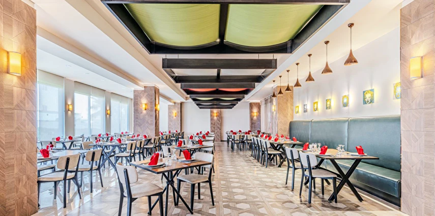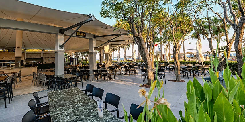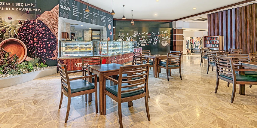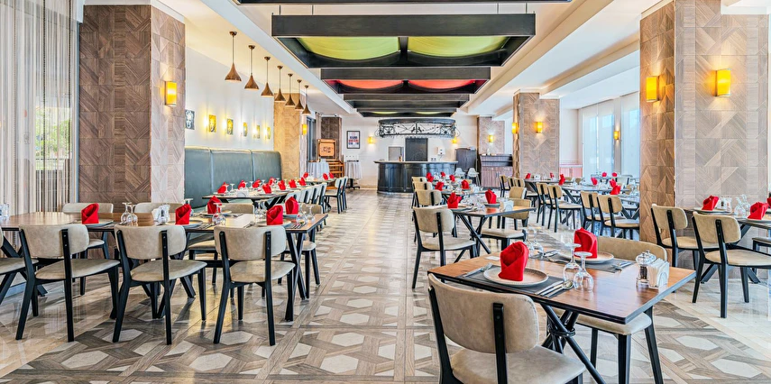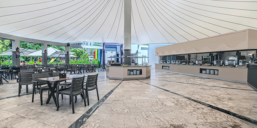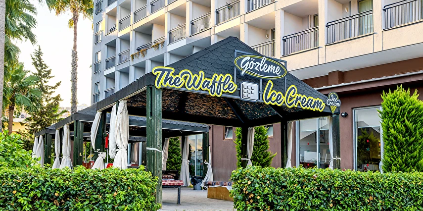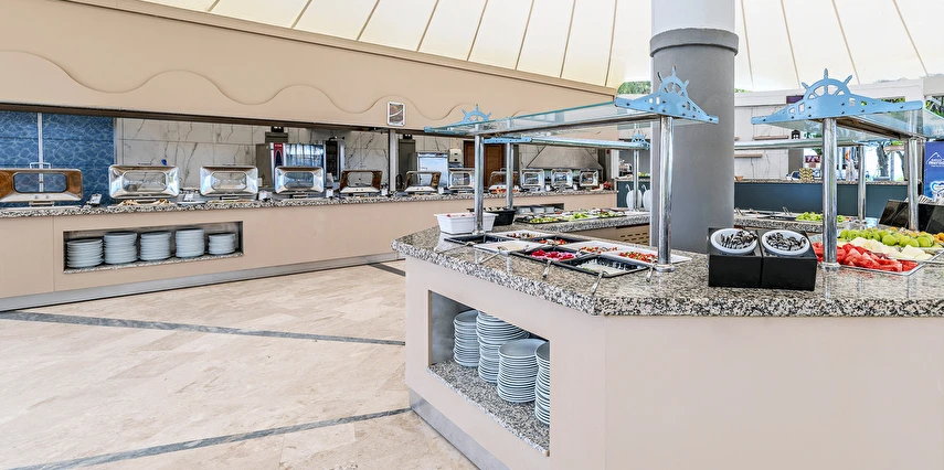 Sabah kahvaltısı, öğle ve akşam yemekleri açık büfe olup tesisin belirlediği markalar dahilinde alkollü ve alkolsüz içecekler 24 saat ücretsizdir. Kahvaltıda Portakal suyu servis edilir. Pastanede 10:00 ile 24:00 saatleri arası Türk Kahvesi servis edilir. Tüm Barlarda Efes Bira ve Pepsi ürünleri kullanılır. Temalı Geceler (Türk gecesi / Balık gecesi ) mevcuttur. Nargile, Taze Sıkılmış Meyve Suyu ve Şişede İçecekler ücretlidir.