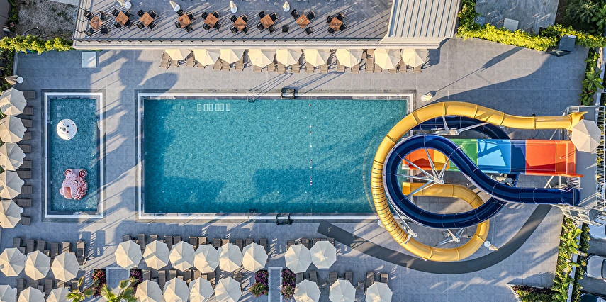 2 adet yüzme havuzu mevcuttur. (1’i kaydıraksız) diğeri 3 kaydıraklıdır.