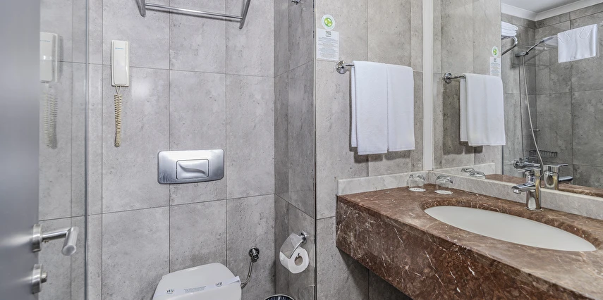 Lobby Barda Mevcut İmport İçecekler; Johnnie Walker red label / J&B-Bell’s / Martini Bianco / Martini Rosso / Martini Dry-Campari / Smirnoff Vodka / Istanblue Vodka / Gilbey’s Vodka / Gordon’s gin / Gilbey’s gin / Captain Morgan / White rum / Baileys / Tequila Omega / Bottles of Wine / Champagne / Cocktails