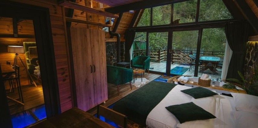 Tesis bünyesindeki odalar dağ veya doğa manzaralı olup, rahat yaşam alanları, balkon veya teras gibi özelliklerle zenginleştirilmiştir. Wi-Fi erişimi ve kahve/çay makinesi gibi temel konforlar standart olarak sunulmaktadır. Ayrıca bungalow’larda jakuzi, şömine gibi seçenekler de mevcuttur ve konaklamanızı daha da özel kılar.