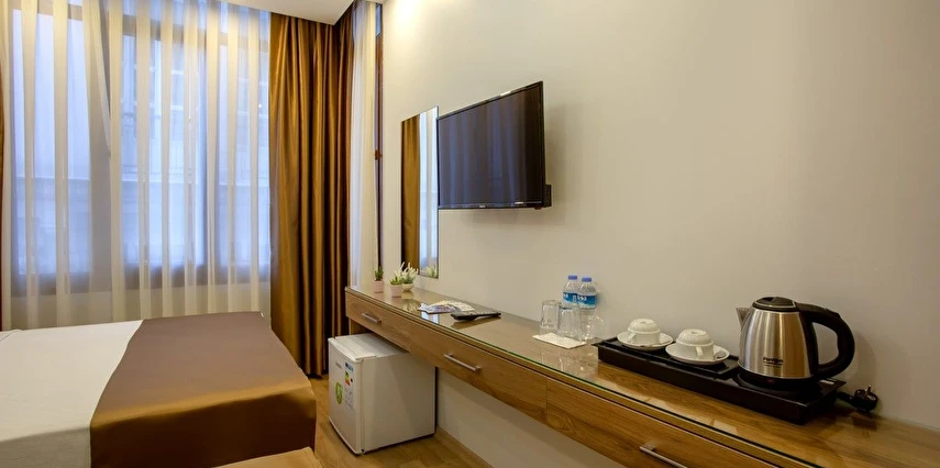 Daha Fazla GösterWest Palace, İstanbul'un merkezinde konaklama imkanı sunuyor. İstanbul'da İstiklal Caddesi'ne 1 dakika yürüme mesafesinde, Galata Kulesi'ne 1 km uzaklıkta. West Palace Hotel, otele uzak bir konumda yer almakta olup bir bar ve ortak salona sahiptir. Bu otel ayrıca restoran, 7/24 resepsiyon, oda servisi ve tüm alanlarda ücretsiz WiFi gibi olanaklar sunmaktadır. Otelde aile odaları mevcuttur.