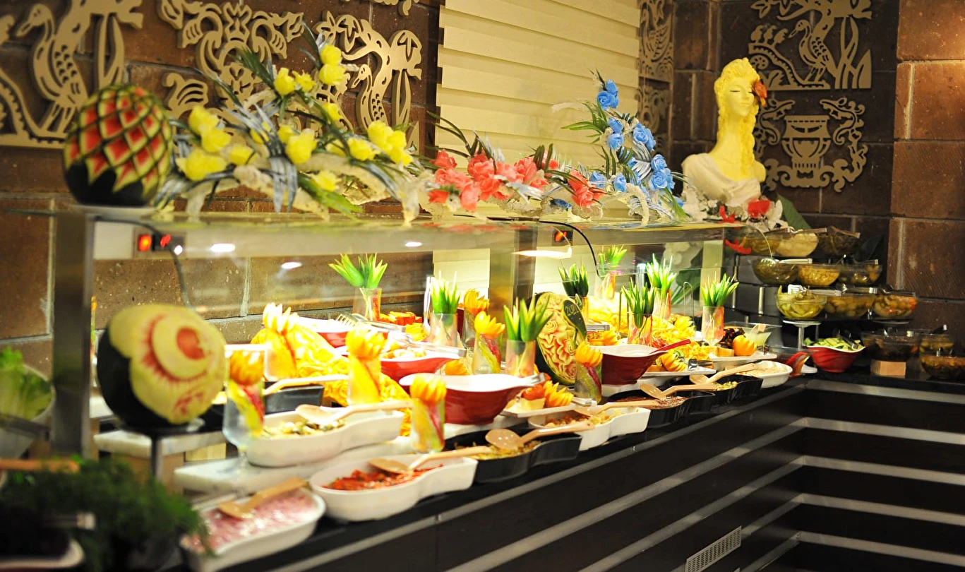 Tam Pansiyon Konseptinde Ana Restoranda, açık büfe kahvaltı, öğle yemeği, akşam yemeği dahildir.