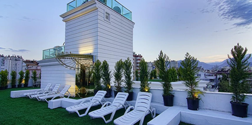 Konaklama için tercihiniz S White Hotel olduğunda Konyaaltı Plajı ve Konyaaltı Plajı hedeflerine 15 dakikalık yürüme mesafesinde bulunacaksınız. Açık havuzda keyifli vakit geçirdikten sonra restoran olanağından yararlanıp bir şeyler atıştırabilir veya barda/dinlenme salonunda bir içecekle rahatlayabilirsiniz. Çocuk havuzu, teras ve bahçe diğer öne çıkan özellikler arasındadır.