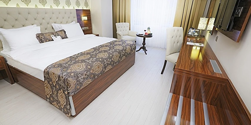 Daha Fazla GösterTUYAP Fuar merkezi ve daha birçok ticaret merkezine yakınlığıyla özellikle iş seyahatleri için konforlu bir seçenek sunan Reis Inn Hotel İstanbul, Beylikdüzü’nde hizmet veriyor. Tesis zarif ve ışıltılı dekorasyonunun yanı sıra birbirinden konforlu odalarıyla da beğeni kazanıyor. Tesiste geniş katılımlı seminer, toplantı ve kongre gibi etkinliklere uygun toplantı salonları, lezzetli içecekler sunan barın yanı sıra dünya mutfaklarından farklı lezzetler sunan a la carte restoranlar da bulunuyor. Tesisin SPA merkezinde; kapalı havuz, Türk hamamı, sauna, buhar odası ve masaj hizmeti gibi olanaklarla misafirlerin bedenen ve zihnen yenilenmelerine olanak sağlanıyor. Tesise ait otopark, çamaşırhane, emanet kasası ve 24 saat resepsiyon ayrıcalıkları sunan tesis, zengin sabah kahvaltıları ve kablosuz internet erişi ile misafirlerine rahatça dinlenebilecekleri bir konakjlama adresi sunuyor. Atatürk Havalimanı ve TÜYAP Fuar Merkezi'ne yakın konumda bulunan Reis İnn Hotel İstanbul, hem iş hem eğlence amaçlı geziler için avantajlı bir konaklama alternatifi sunuyor.