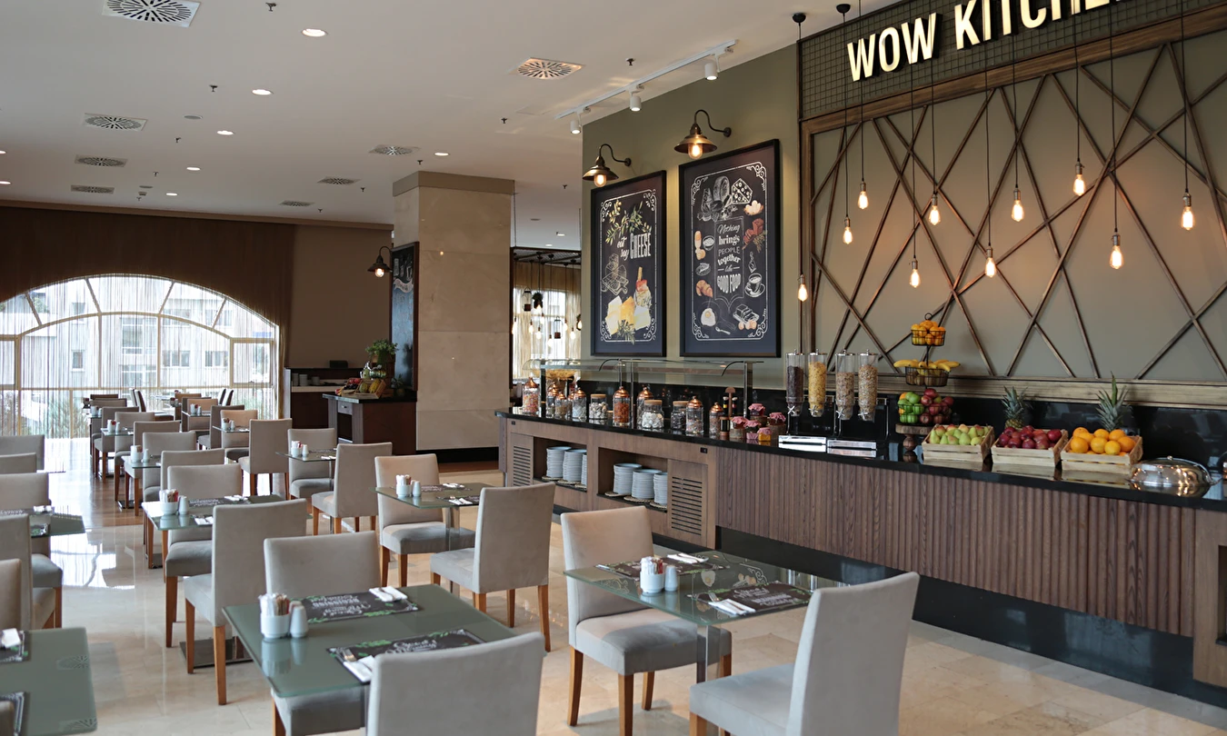 Özenle dekore edilmiş modern odaları ve suitleriyle misafirlerine zarif bir atmosfer sağlayan WOW İstanbul Hotel’de, Türk ve dünya mutfaklarının seçkin lezzetleri Mezzanine Restaurant’ta sunulmaktadır.