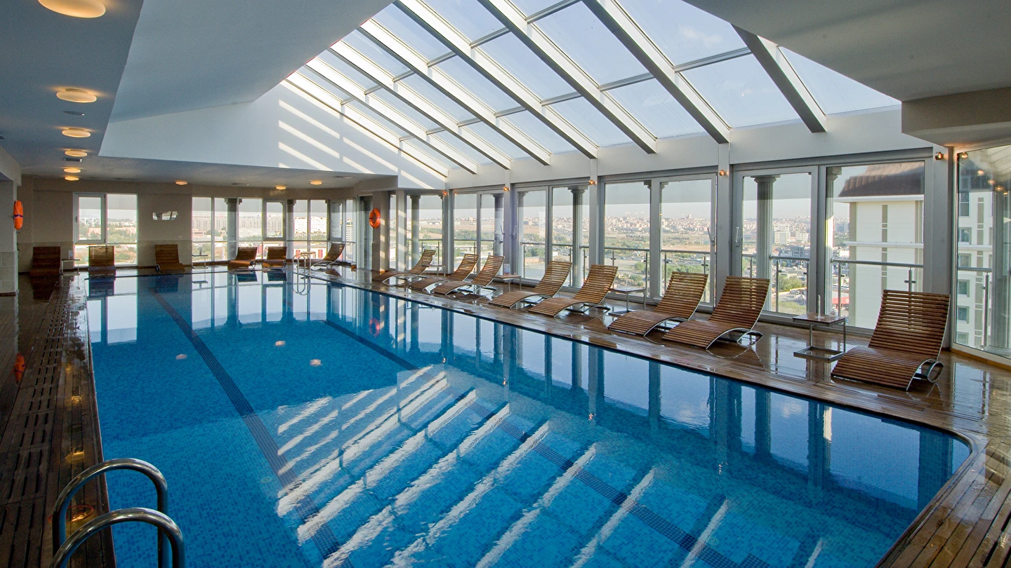 Otelimiz, sağlık ve dinlenmeyi ön planda tutan misafirler için çatı katında cam tavanlı kapalı havuz, fitness merkezi, Türk hamamı, sauna, masaj salonu ve spa olanaklarıyla donatılmıştır.
