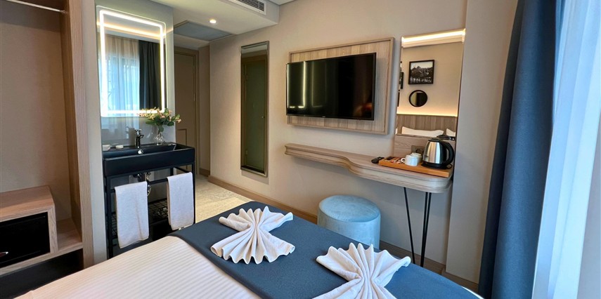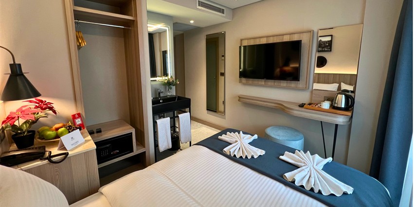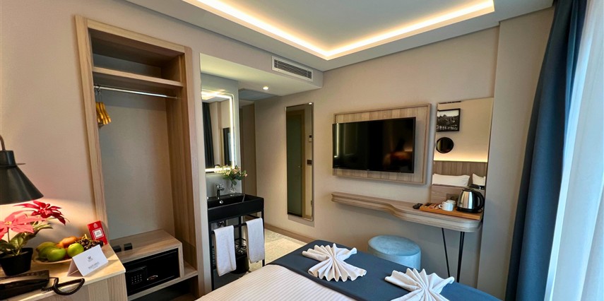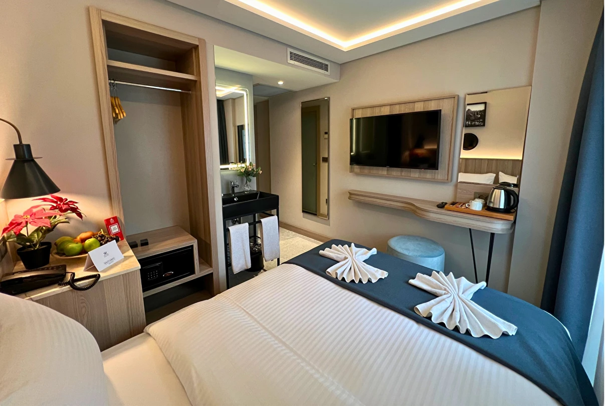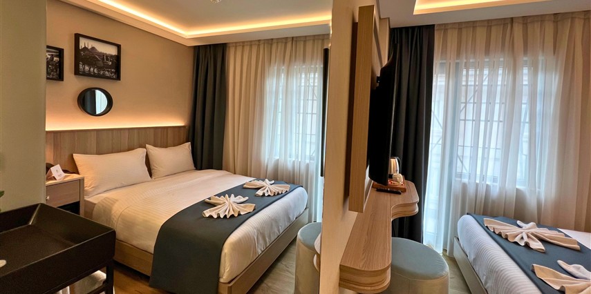 Daha Fazla Gösterİstanbul'un tarihi Vezneciler bölgesinde konumlanan modern bir otel. Sultanahmet'e çok yakın olan otelimiz, Laleli alışveriş bölgesine yürüme mesafesindedir. Trafiksiz ve sessiz bir konumda bulunan otelimiz, aileler için yanındaki çocuk oyun alanıyla rahatlık sunar. Aksaray ve Laleli tramvay duraklarına yürüme mesafesinde olup, şehri keşfetmek için mükemmel bir başlangıç noktasıdır. Yeni tasarlanmış modern odalarımız, zengin açık büfe kahvaltımız ve samimi personelimizle konuklarımızın memnuniyeti önceliğimizdir.