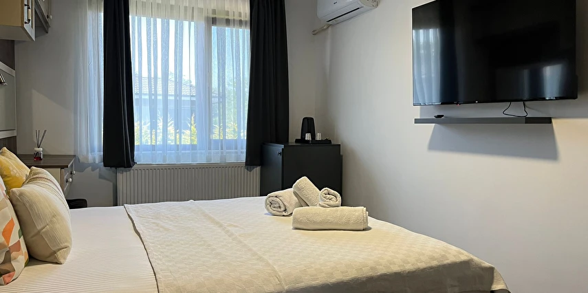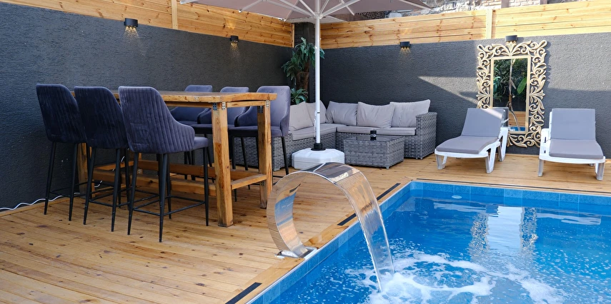 Daha Fazla GösterOtelimizde Rüyalarınızdaki Tatili Yaşayın! Sakin bir tatil mi arıyorsunuz, yoksa eğlence dolu bir hafta sonu mu? 3 bölümden oluşan otelimiz size her ikisini de sunuyor! 12 odamız ve 2 VIP odamız ile her bütçeye uygun konaklama seçeneği sunuyoruz. Havuz kenarındaki yeni nesil meyhanemizde akşamları lezzetli mezelerin tadına bakabilir, gündüzleri ise happy hour ve beach keyfi yaşayabilirsiniz. Otel misafirlerimiz havuzu ücretsiz olarak kullanabilir. Kendine özel havuzu, barbekü alanı ve korunaklı bahçesi ile 1+1 deluxe süitlerimiz size ailenizle veya arkadaşlarınızla unutulmaz bir tatil imkanı sunuyor.