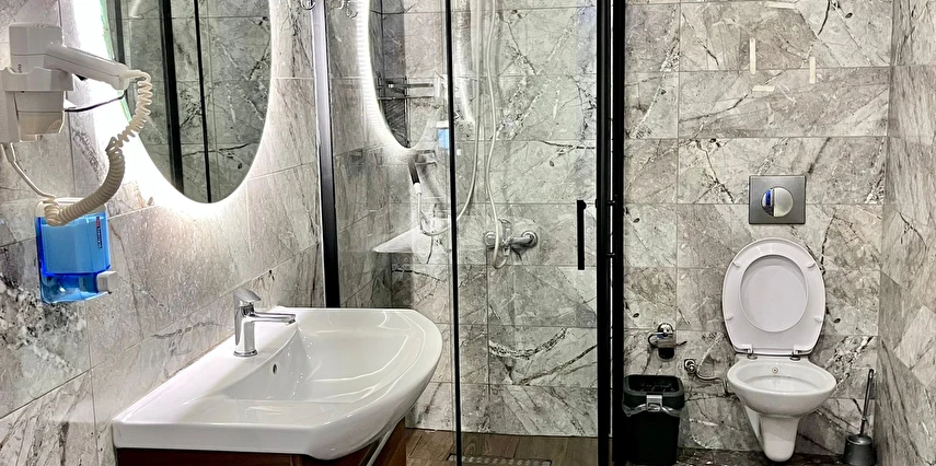 Özel Banyo: 24 saat kesintisiz sıcak su, duşakabin ve buklet malzemeleri.