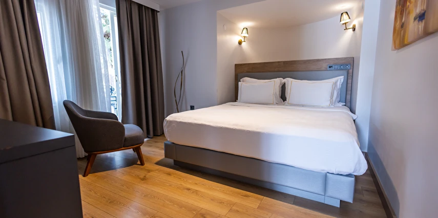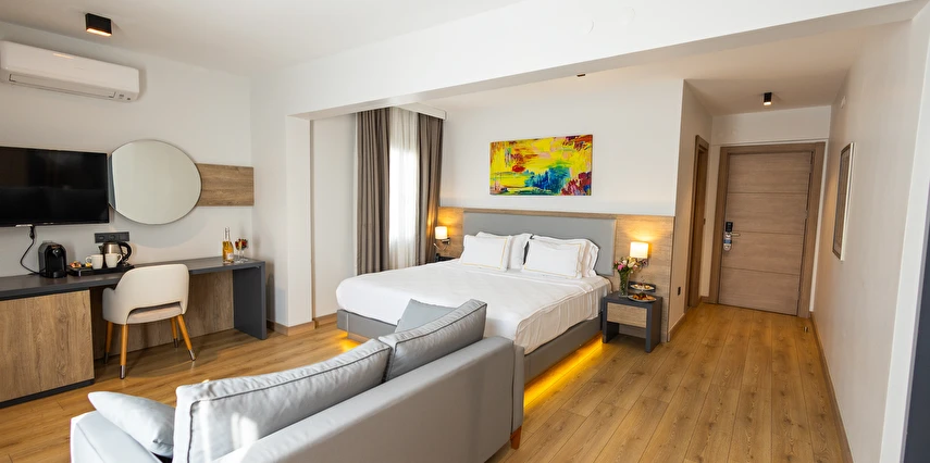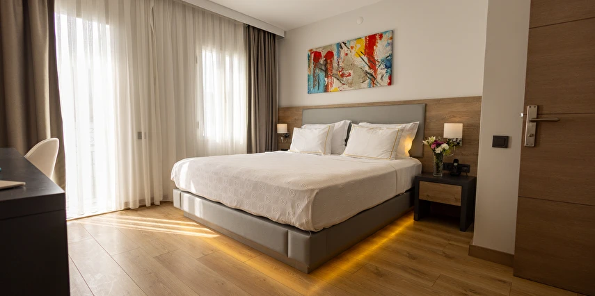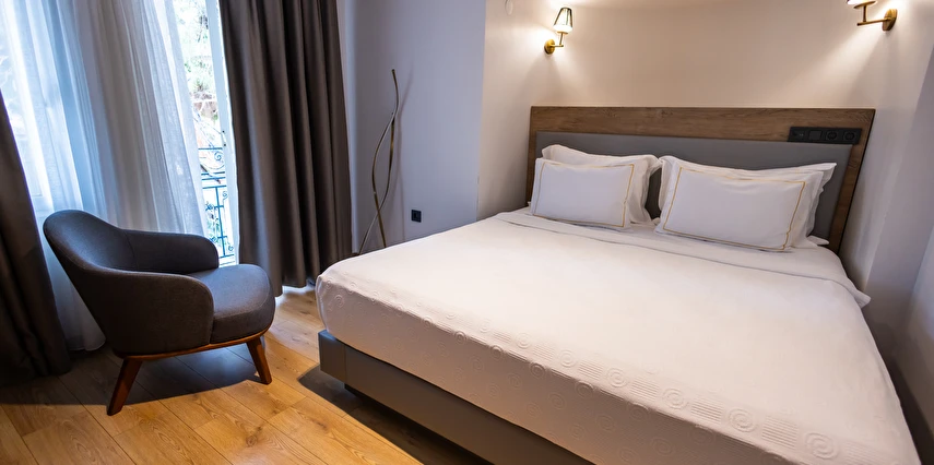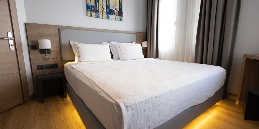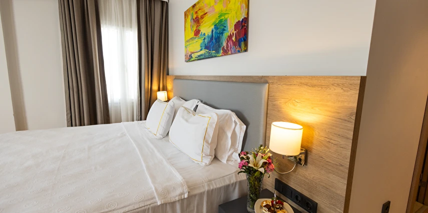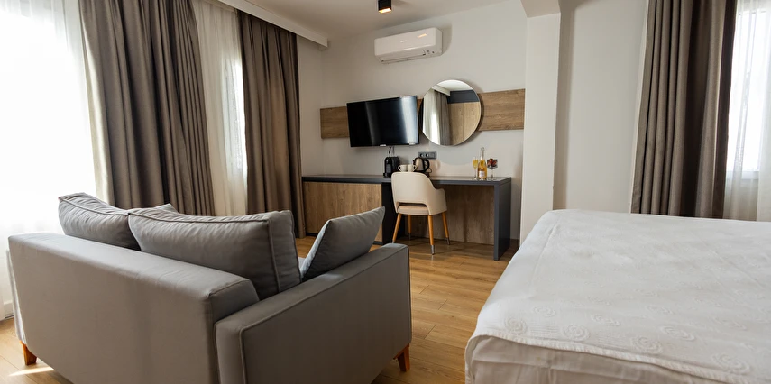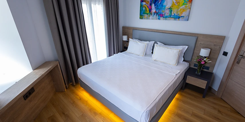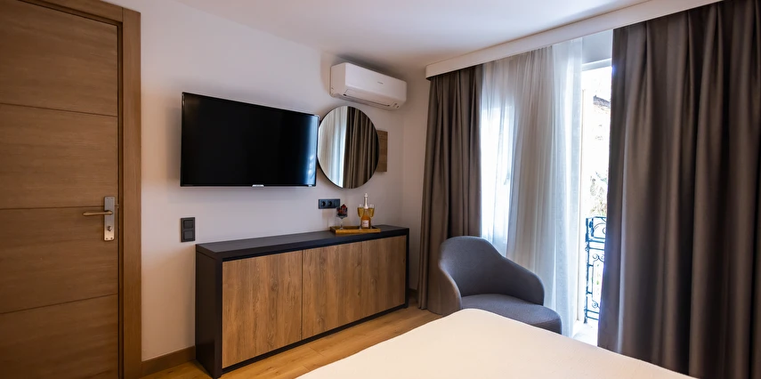 Modern ve yalın dekorasyon anlayışıyla tasarlanan odalar; deniz manzaralı, balkonlu ve teraslı seçenekleriyle konforu ön planda tutar. Tüm odalarda klima, televizyon, minibar ve ücretsiz Wi-Fi gibi olanaklar mevcuttur. Yenilenen yapısı ve kaliteli malzeme kullanımıyla Yalinn Boutique Hotel, lüksü sade bir zarafetle buluşturur.
