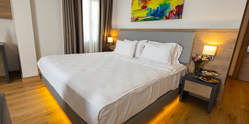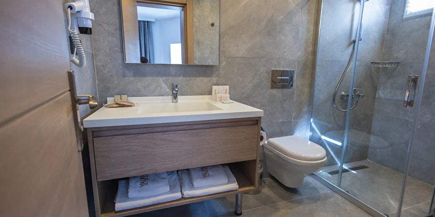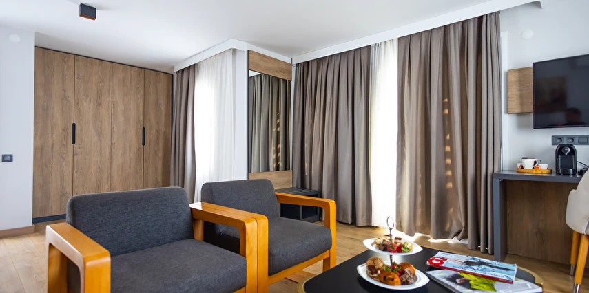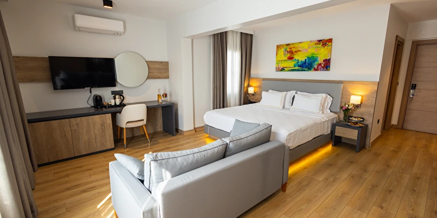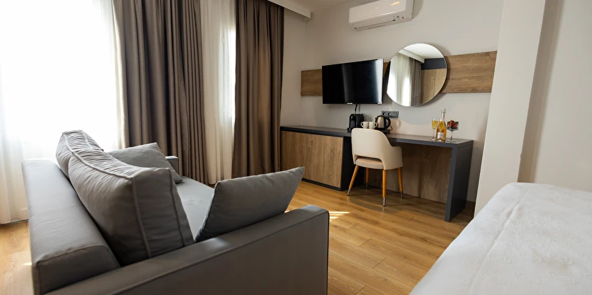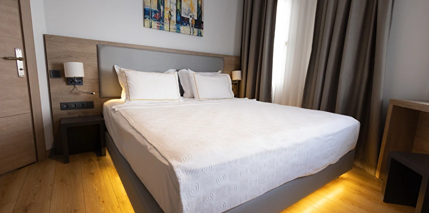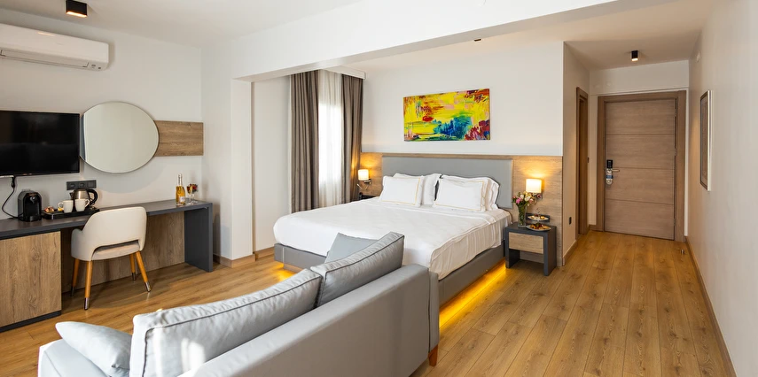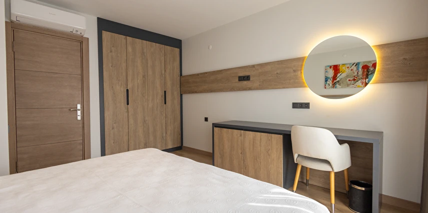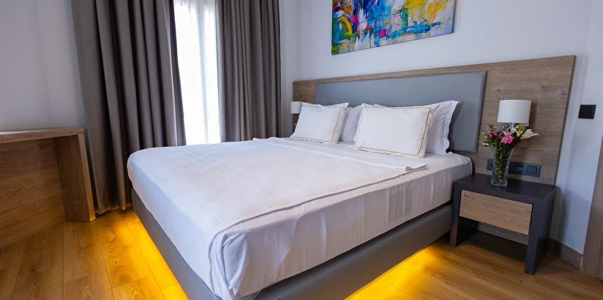 Modern ve yalın dekorasyon anlayışıyla tasarlanan odalar; deniz manzaralı, balkonlu ve teraslı seçenekleriyle konforu ön planda tutar. Tüm odalarda klima, televizyon, minibar ve ücretsiz Wi-Fi gibi olanaklar mevcuttur. Yenilenen yapısı ve kaliteli malzeme kullanımıyla Yalinn Boutique Hotel, lüksü sade bir zarafetle buluşturur.