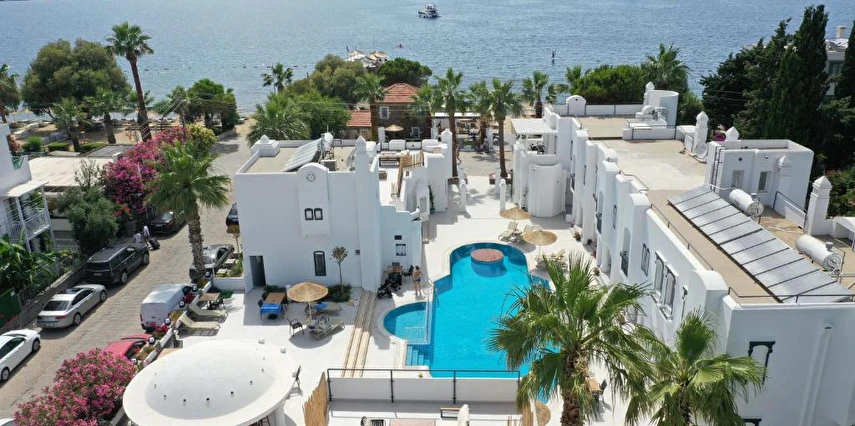 Denize sıfır konumu sayesinde otelin oda ve süitlerinden, restoran, teras ve bar alanlarına kadar tüm noktalar Bodrum’un muhteşem deniz ve havuz manzarasına eşlik eder. Açık havuz, özel plaj, lezzetli kahvaltı ve alakart restoran (ücretli) ile tatiliniz boyunca konfor ve keyif bir arada sunulur.
