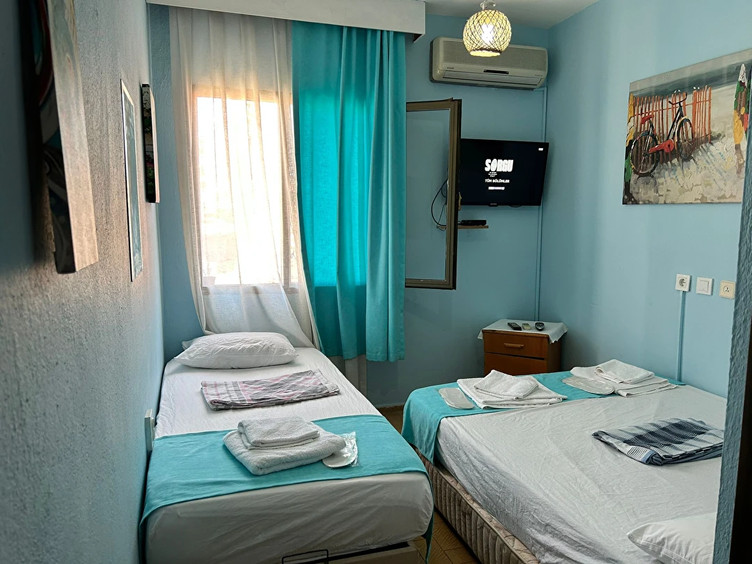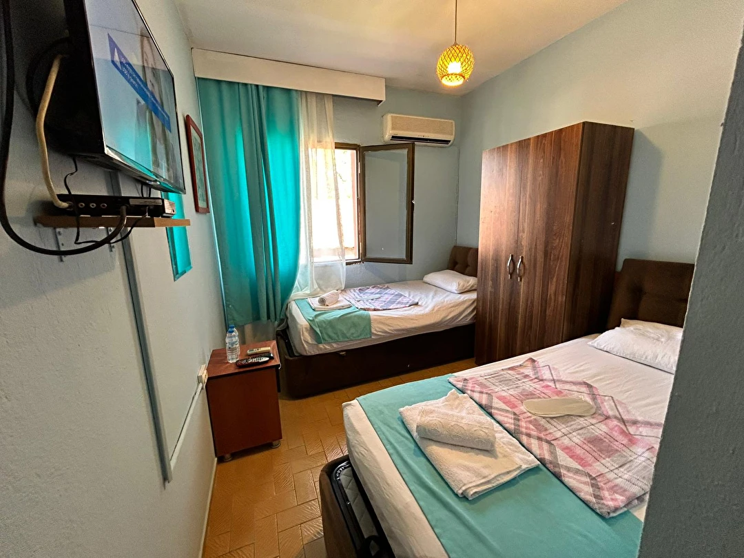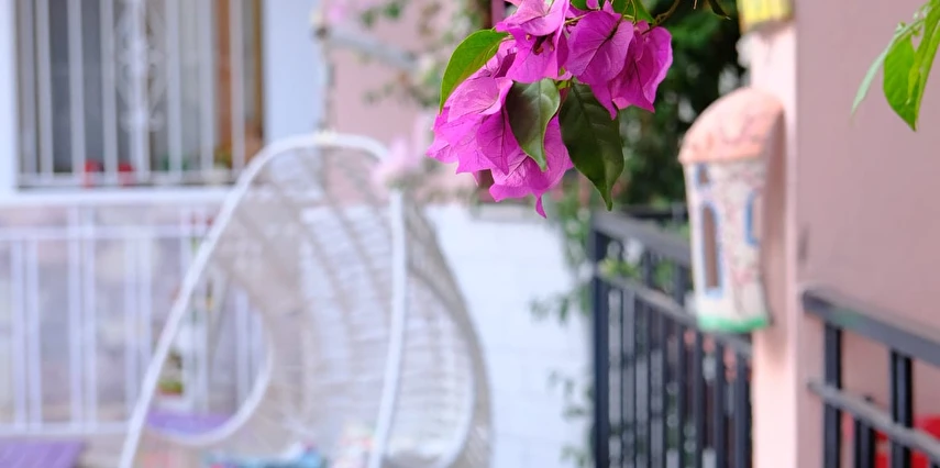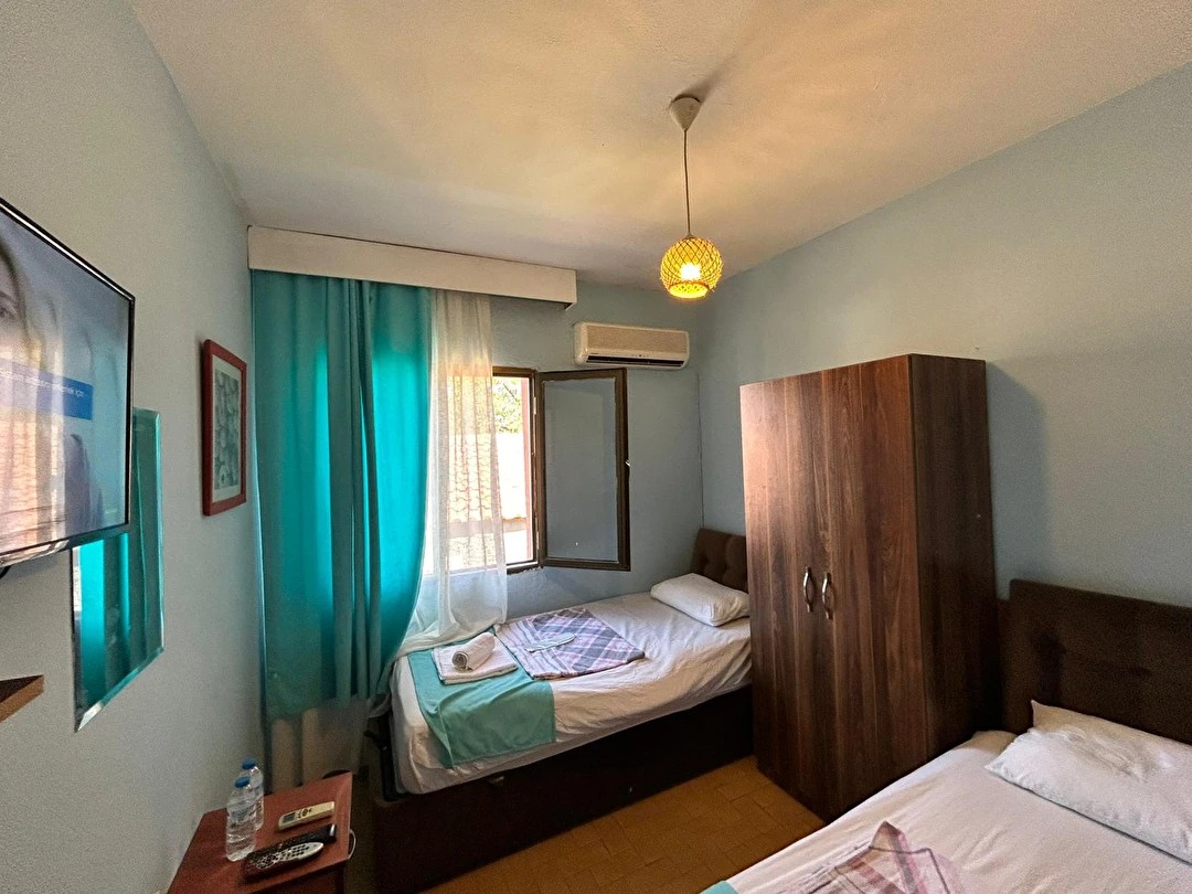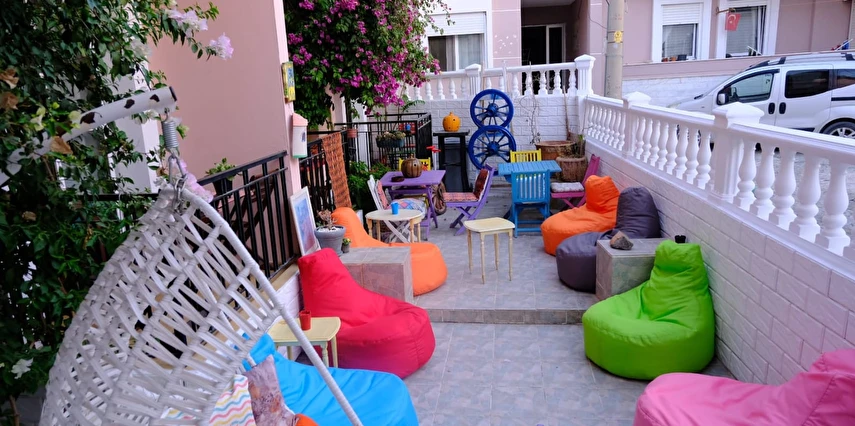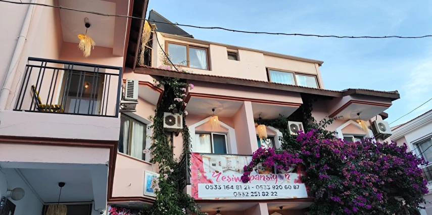 Çeşme merkezinde, plaja 10 dakika yürüyüş mesafesindedir. Pansiyonumuz Çeşme kalesine, merkez çarşıya, marinaya 5 dakika yürüyüş mesafesinde olup son derece keyifli bir tatil yapabileceğiniz konumdadır. Terasında bambudan yapılmış hasırlar altında Çeşme manzarası eşliğinde kahvaltınızı son derece zengin çeşitleriyle yapabilirsiniz. Akşam yemeklerimiz etli ve etsiz olarak sunulmaktadır. Odaların balkonlarında begonvillerimizde siz değerli misafirlerimizin güzel sohbetlerinize eşlik etmektedir