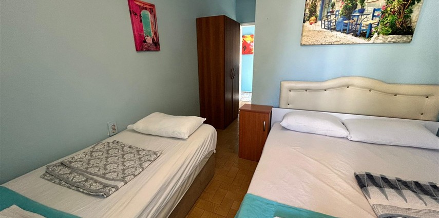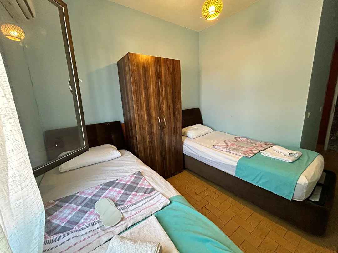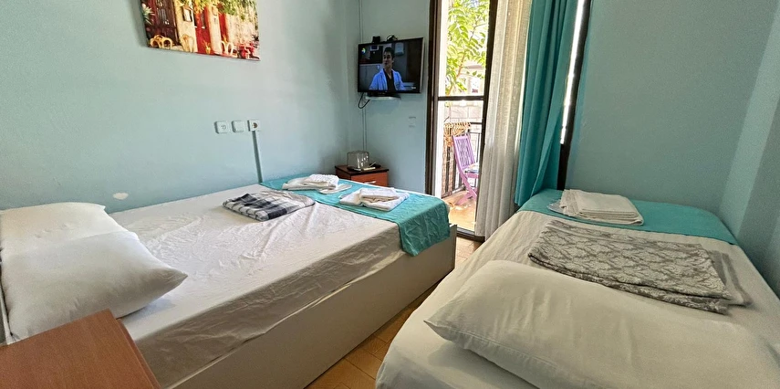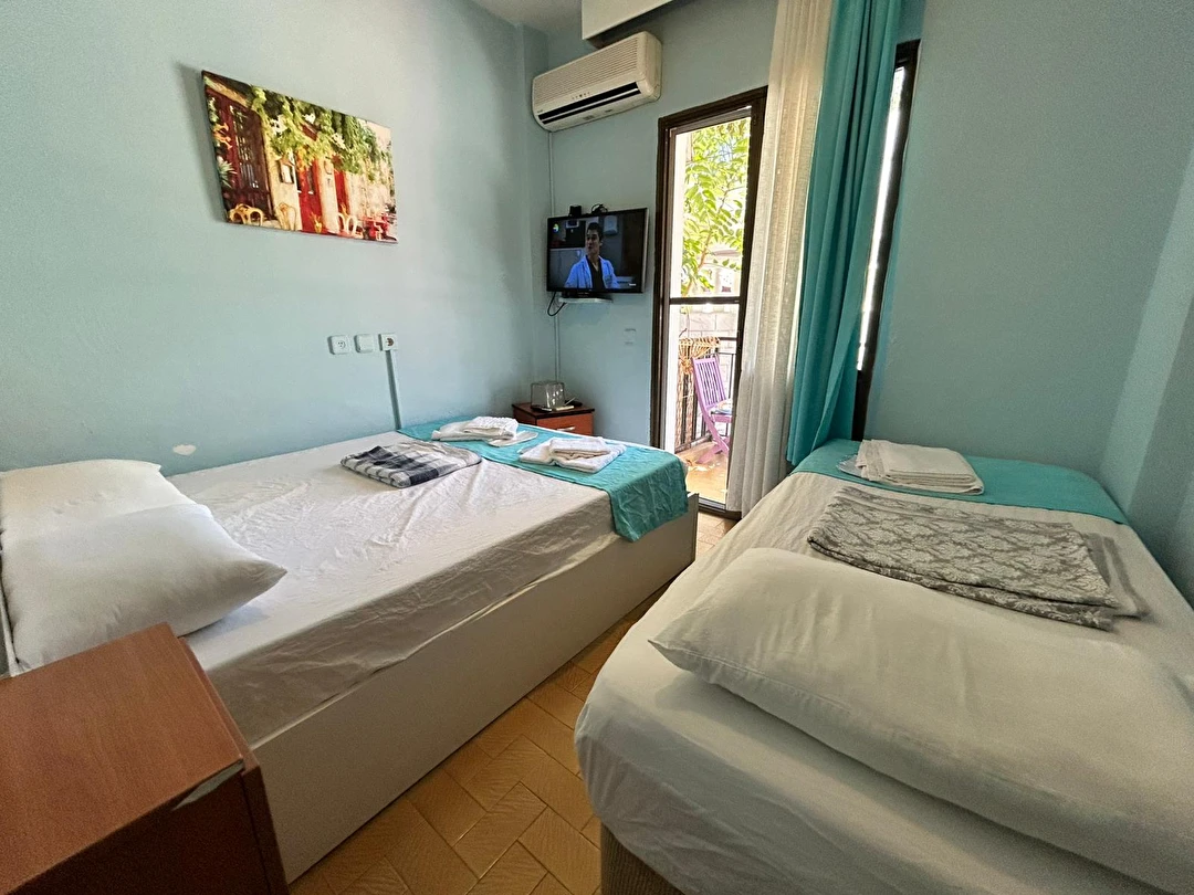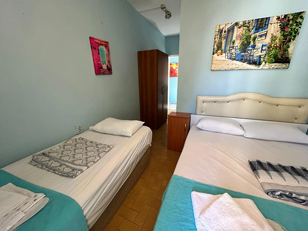 Çeşme merkezinde, plaja 10 dakika yürüyüş mesafesindedir. Pansiyonumuz Çeşme kalesine, merkez çarşıya, marinaya 5 dakika yürüyüş mesafesinde olup son derece keyifli bir tatil yapabileceğiniz konumdadır. Terasında bambudan yapılmış hasırlar altında Çeşme manzarası eşliğinde kahvaltınızı son derece zengin çeşitleriyle yapabilirsiniz. Akşam yemeklerimiz etli ve etsiz olarak sunulmaktadır. Odaların balkonlarında begonvillerimizde siz değerli misafirlerimizin güzel sohbetlerinize eşlik etmektedir
