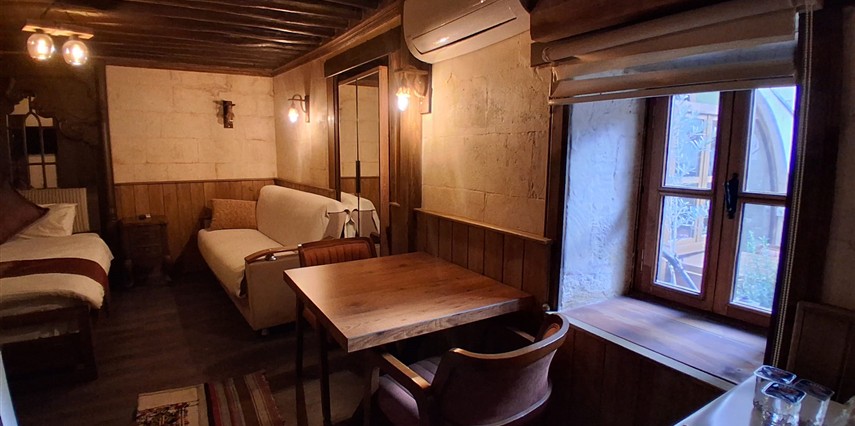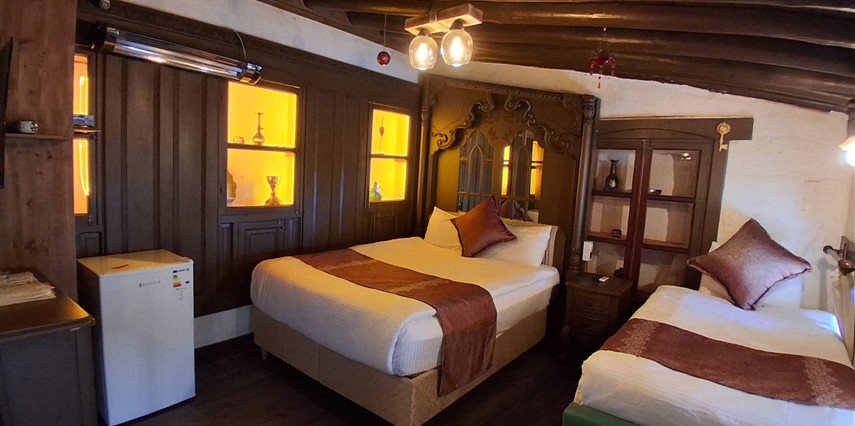 Daha Fazla GösterTarih, Konfor ve Zarafetin Buluştuğu Yer Yılmaz Han Konak, geçmişin izlerini taşıyan büyüleyici mimarisi ve modern konforu bir araya getiren benzersiz bir konaklama tesisidir. Şehrin tarihi dokusunun tam kalbinde yer alan konak, hem kültürel zenginliklere hem de modern yaşama kolay erişim imkanı sunar. Otelimizde Sizi Neler Bekliyor? Tarihi Doku ve Şık Tasarım: Tarihi unsurlarla modern detayları harmanlayan özgün mimarimiz, misafirlerimize nostaljik bir atmosferde konfor sunar. Konforlu ve Özenle Tasarlanmış Odalar: Her bir detayı incelikle düşünülmüş, şık ve rahat odalarımızda evinizdeki huzuru bulacaksınız. Geleneksel Misafirperverlik: Güler yüzlü ve profesyonel ekibimiz, konaklamanızı en keyifli hale getirmek için her zaman hizmetinizde. Modern Olanaklar: Tarihi atmosferin yanı sıra, konuklarımızın tüm ihtiyaçlarını karşılayacak modern imkanlar ve teknolojik donanımlar tesisimizde mevcuttur. Merkezi Konum: Şehrin önemli turistik ve kültürel noktalarına yürüme mesafesindeki konumumuz, bölgenin zenginliklerini keşfetmenizi kolaylaştırır. Deneyiminizi Unutulmaz Kılın Yılmaz Han Konak ailesi olarak, her misafirimizi özel bir deneyimle buluşturmayı amaçlıyoruz. İster tatil, ister iş seyahati için bizi tercih edin; huzur, konfor ve sıcak bir atmosferin keyfini çıkarın. Yılmaz Han Konak’a hoş geldiniz! Sizi ağırlamaktan mutluluk duyuyoruz.