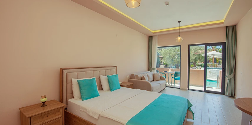 Ölüdeniz'in eşsiz doğasında konumlanan Z Exclusive Hotel & Villas, misafirlerine hem konforu hem de huzuru bir arada sunuyor. Özenle tasarlanmış standart odalarımız, balayı odamız ve süit odalarımız kahvaltı dahil konseptiyle hizmet vermekte olup, standart odalarımızın balkonlarından ortak havuza doğrudan erişim imkânı bulunmaktadır.