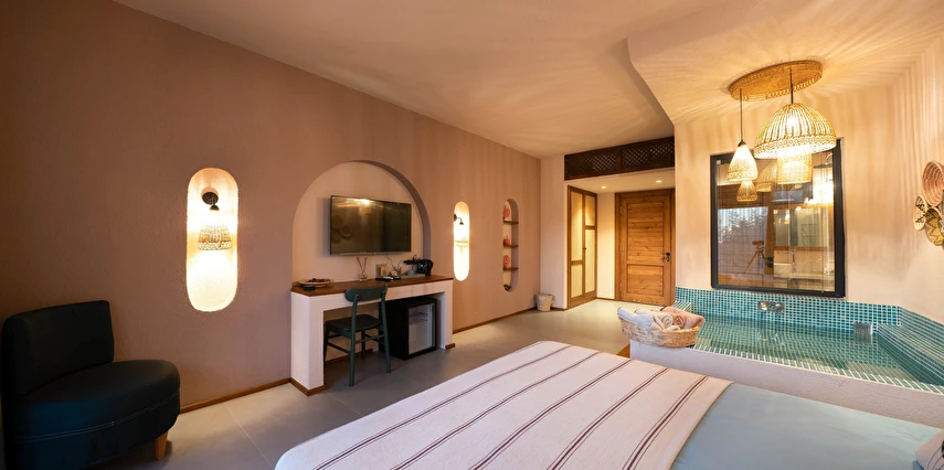 Özel havuzlu villalarımız ise tamamen bağımsız yapıda, kendine ait korunaklı havuzları ve tam donanımlı mutfaklarıyla özgür bir tatil deneyimi sunuyor.