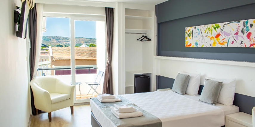 Z Otel Çeşme Merkez'de bulunmaktadır. Tesis oda kahvaltı konseptinde hizmet vermektedir. Odanızda bulunan merkezi klima/split klima ile oda sıcaklığınız ayarlanabilir. Konaklamanız boyunca faydalanabileceğiniz TV standart odalarda mevcuttur.