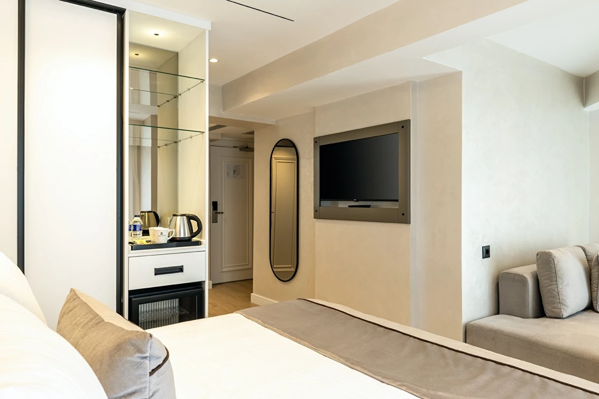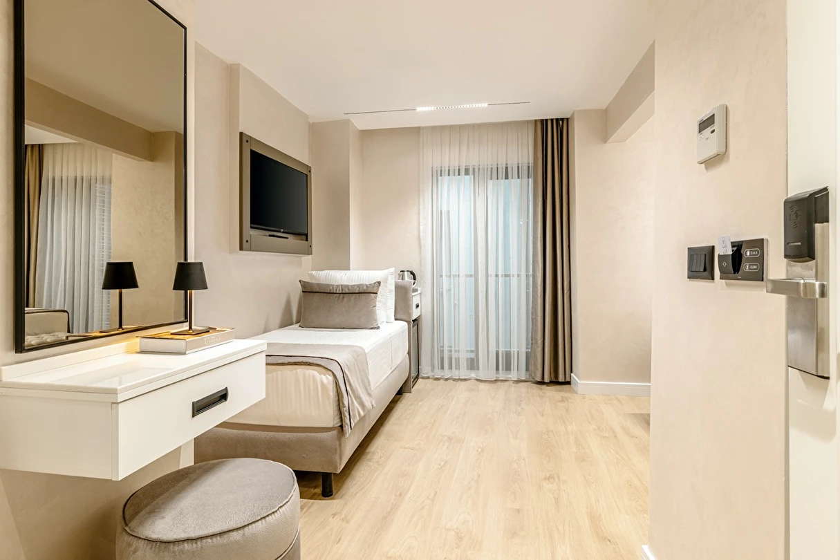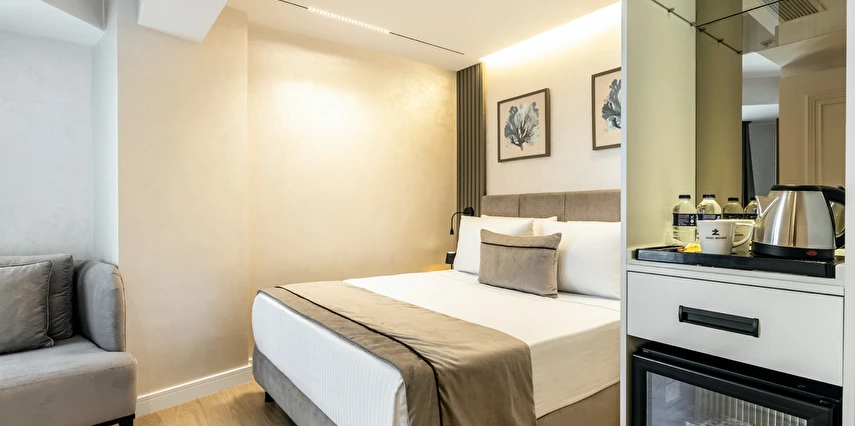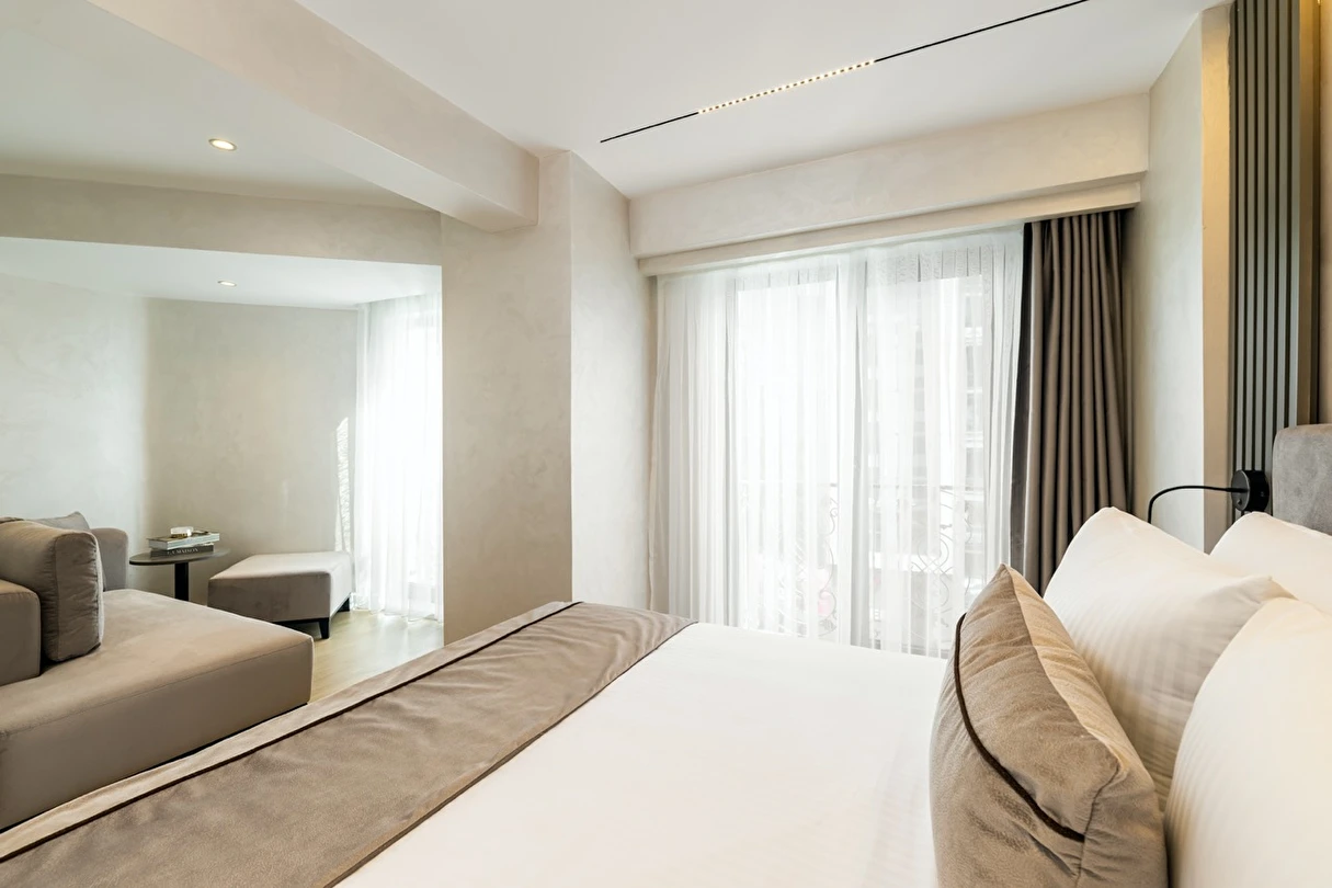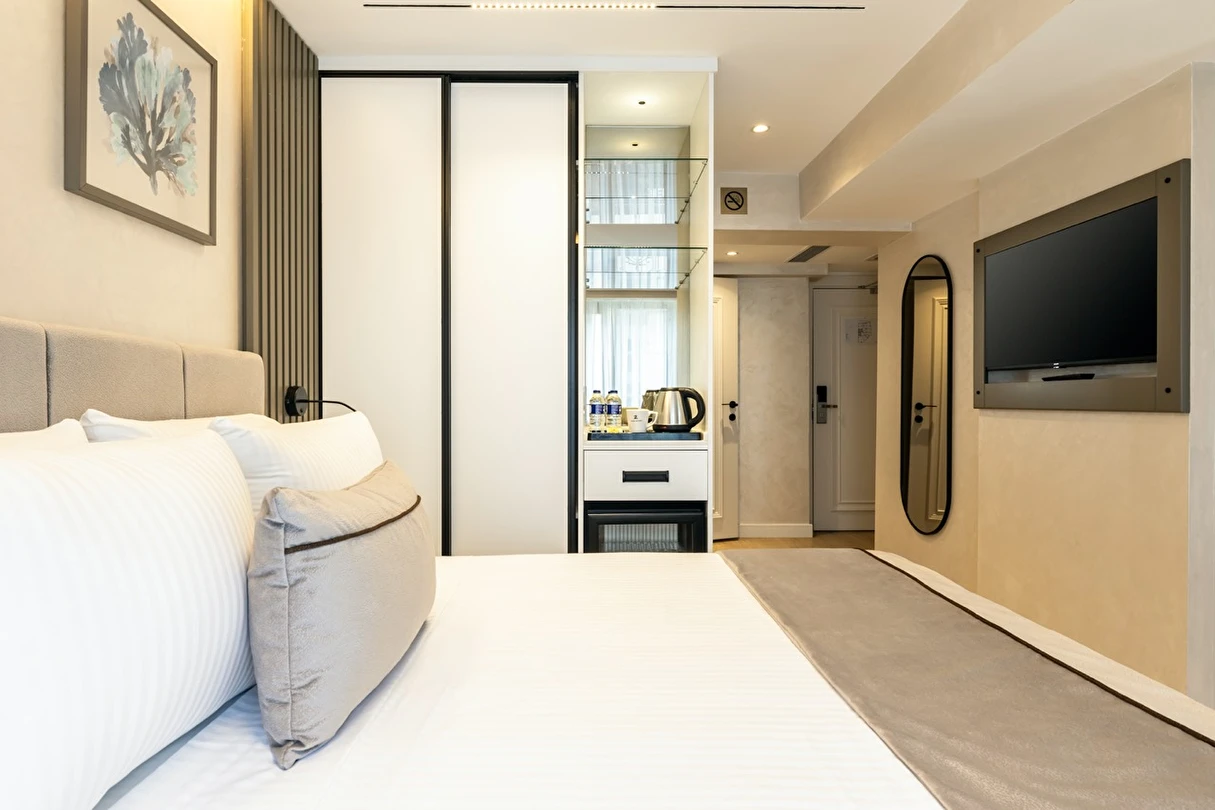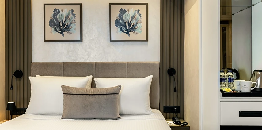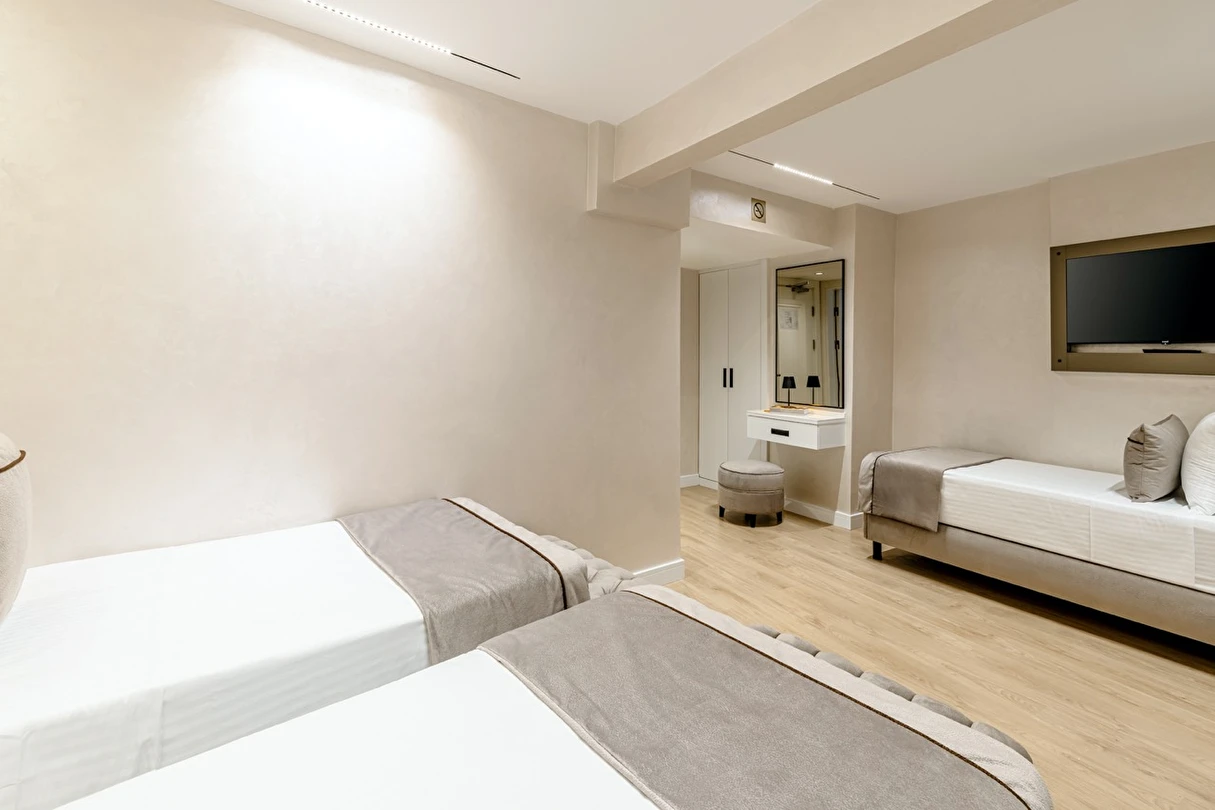 Burada odalar sadece birer konaklama alanı değil; bir ruh hâlidir.22–29 m² arasında değişen, incelikle tasarlanmış yaşam alanlarında ışık yumuşakça duvarlara yayılır. French ve Twin yatak seçenekleriyle her detay konforu fısıldar. İki kişilik odalarda sade bir şıklık, üç kişilik seçeneklerde paylaşılmış anların sıcaklığı saklıdır. Superior odalardaki oturma grupları ise günü yavaşlatmak için tasarlanmış küçük bir sahne gibidir; bir fincan kahve, bir kitap, bir İstanbul akşamı…