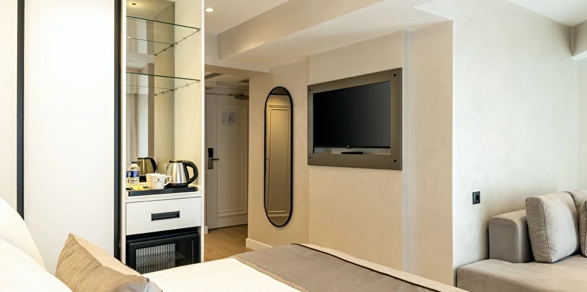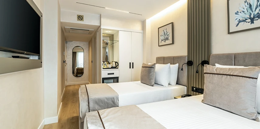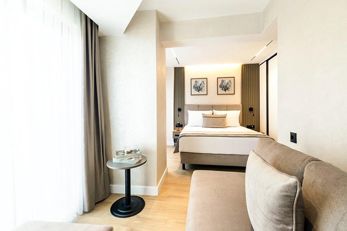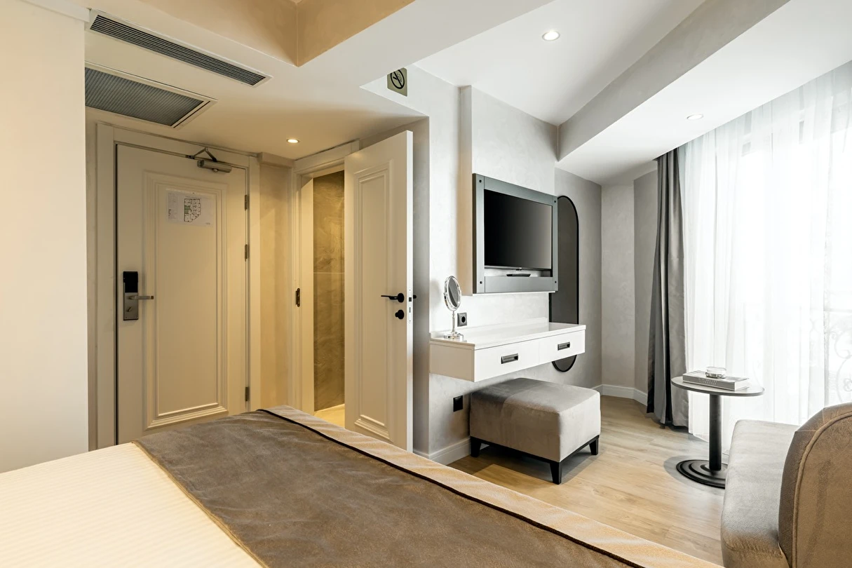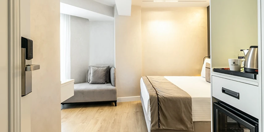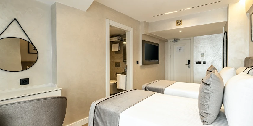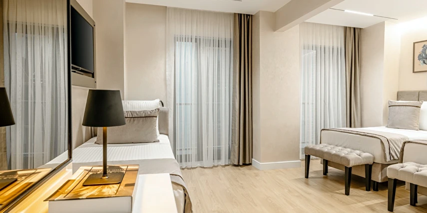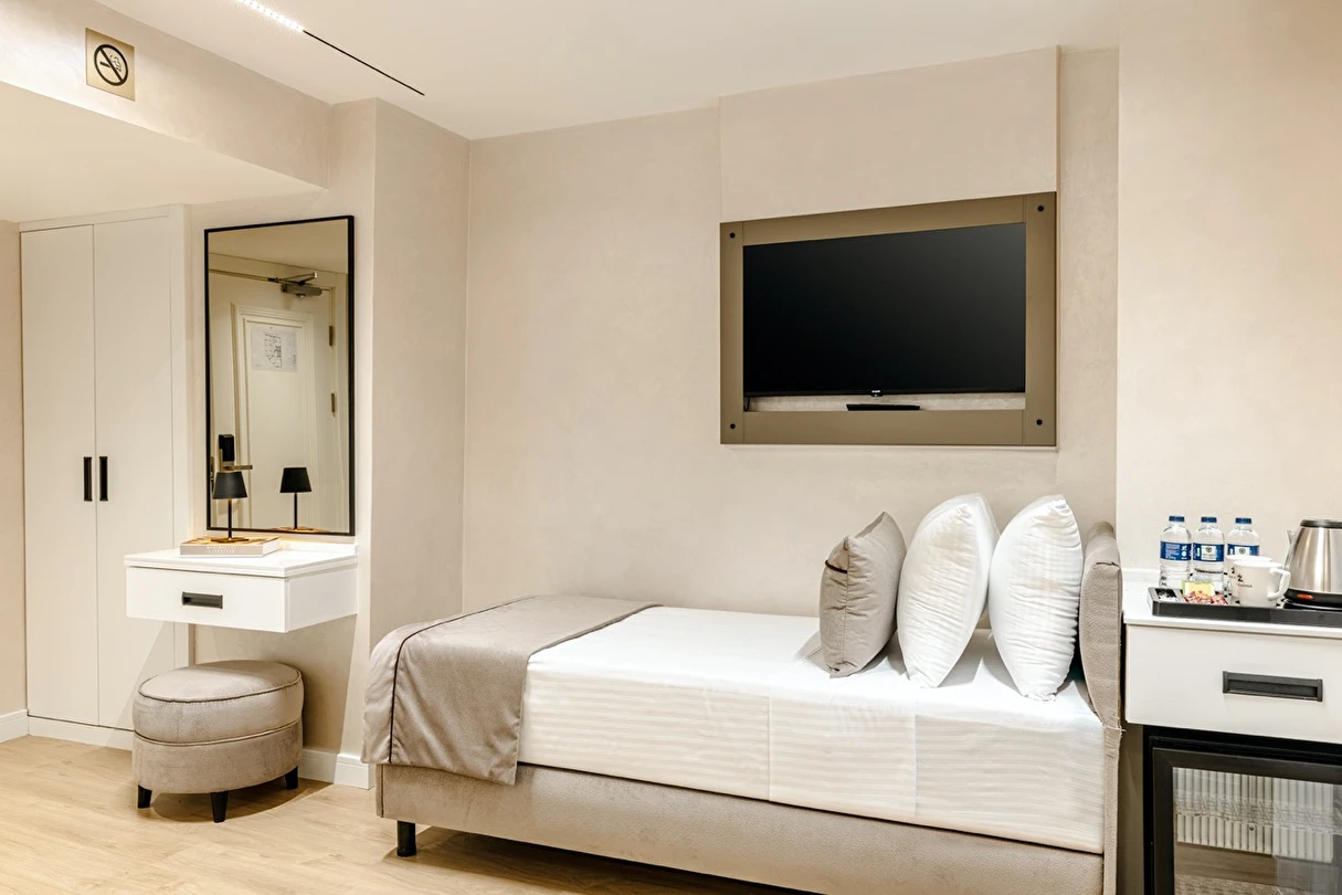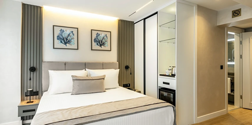 Burada odalar sadece birer konaklama alanı değil; bir ruh hâlidir.22–29 m² arasında değişen, incelikle tasarlanmış yaşam alanlarında ışık yumuşakça duvarlara yayılır. French ve Twin yatak seçenekleriyle her detay konforu fısıldar. İki kişilik odalarda sade bir şıklık, üç kişilik seçeneklerde paylaşılmış anların sıcaklığı saklıdır. Superior odalardaki oturma grupları ise günü yavaşlatmak için tasarlanmış küçük bir sahne gibidir; bir fincan kahve, bir kitap, bir İstanbul akşamı…