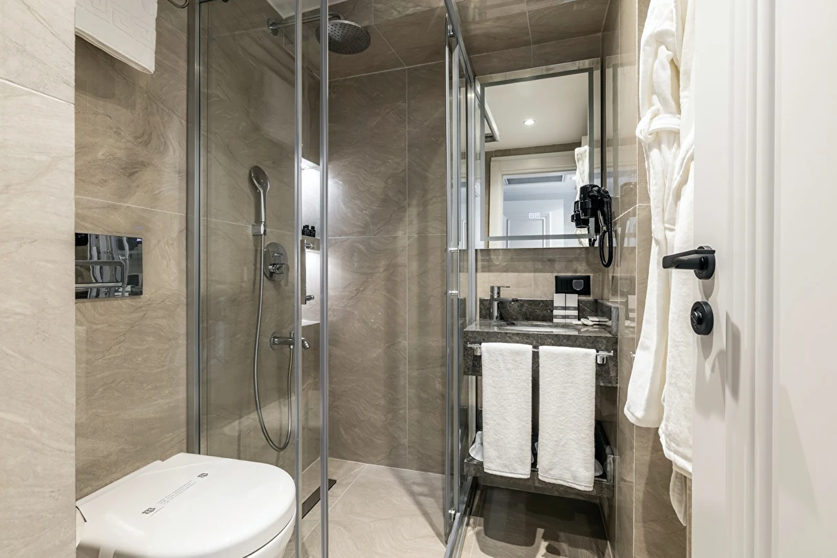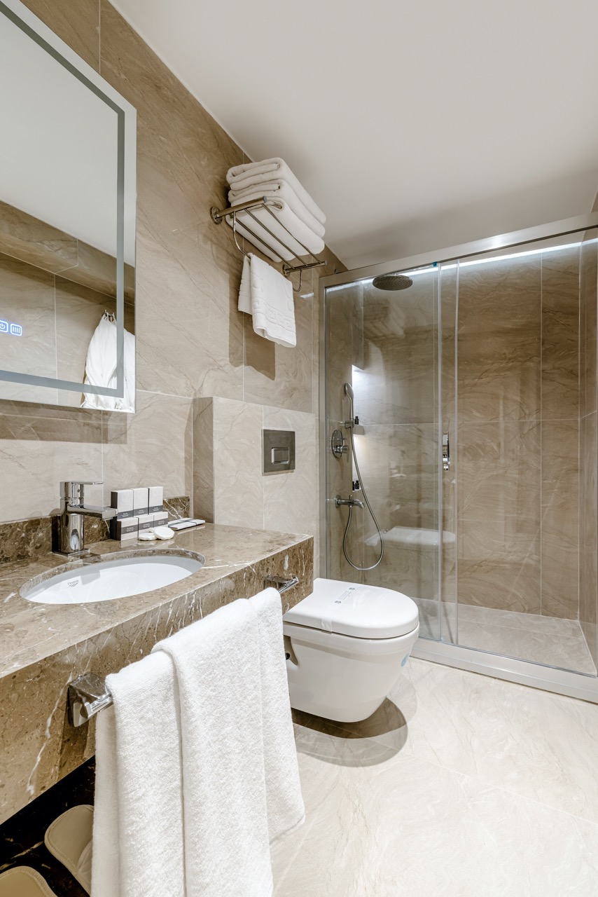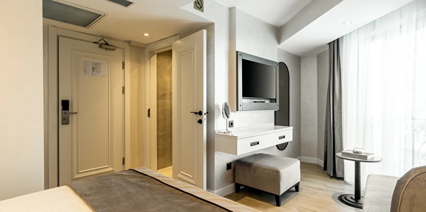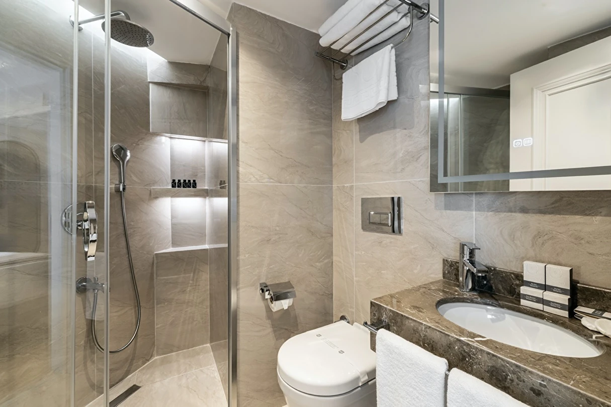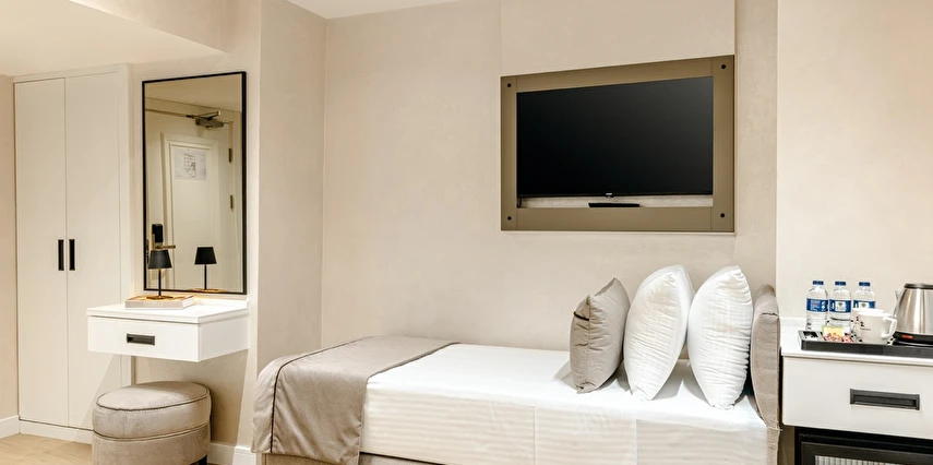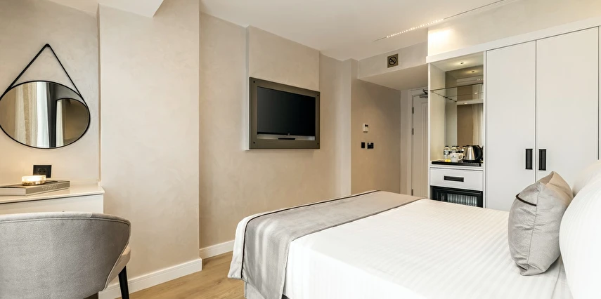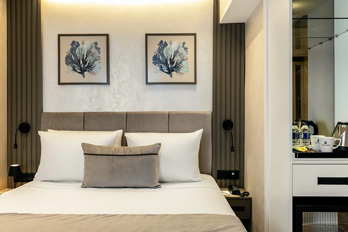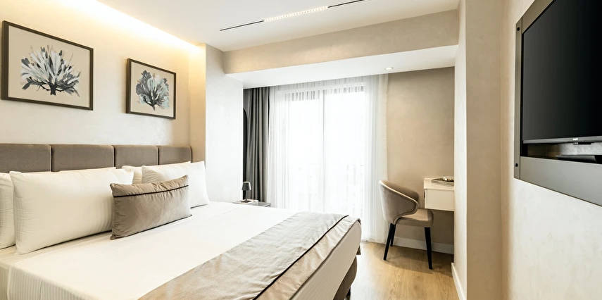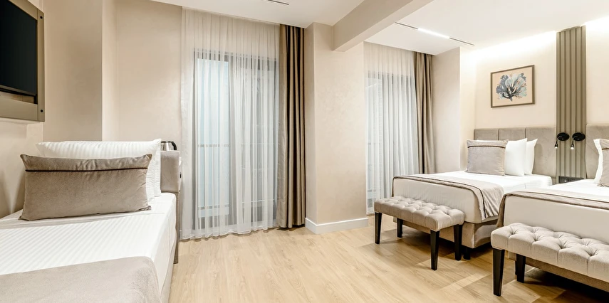 Burada odalar sadece birer konaklama alanı değil; bir ruh hâlidir.22–29 m² arasında değişen, incelikle tasarlanmış yaşam alanlarında ışık yumuşakça duvarlara yayılır. French ve Twin yatak seçenekleriyle her detay konforu fısıldar. İki kişilik odalarda sade bir şıklık, üç kişilik seçeneklerde paylaşılmış anların sıcaklığı saklıdır. Superior odalardaki oturma grupları ise günü yavaşlatmak için tasarlanmış küçük bir sahne gibidir; bir fincan kahve, bir kitap, bir İstanbul akşamı…