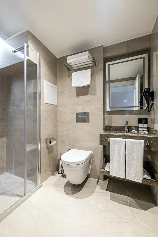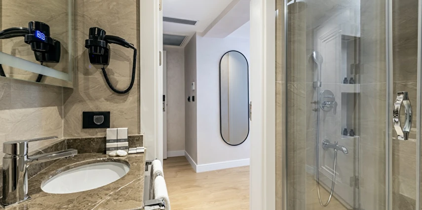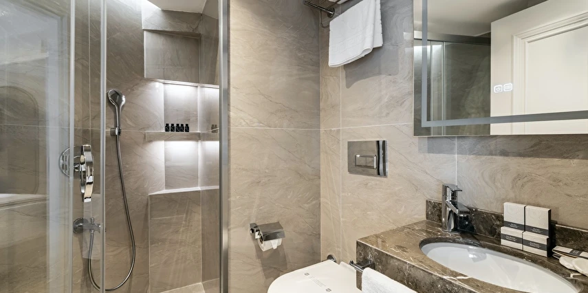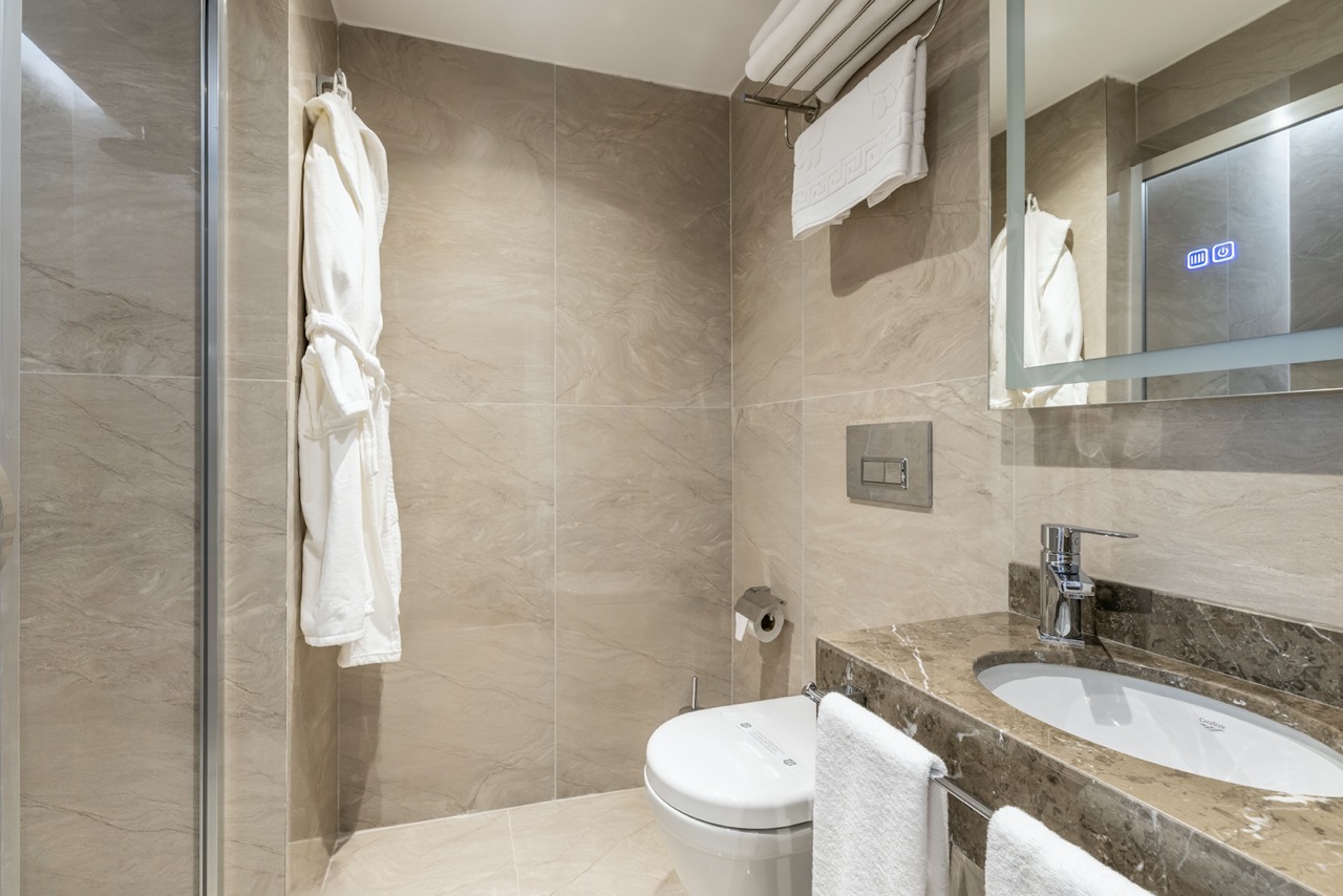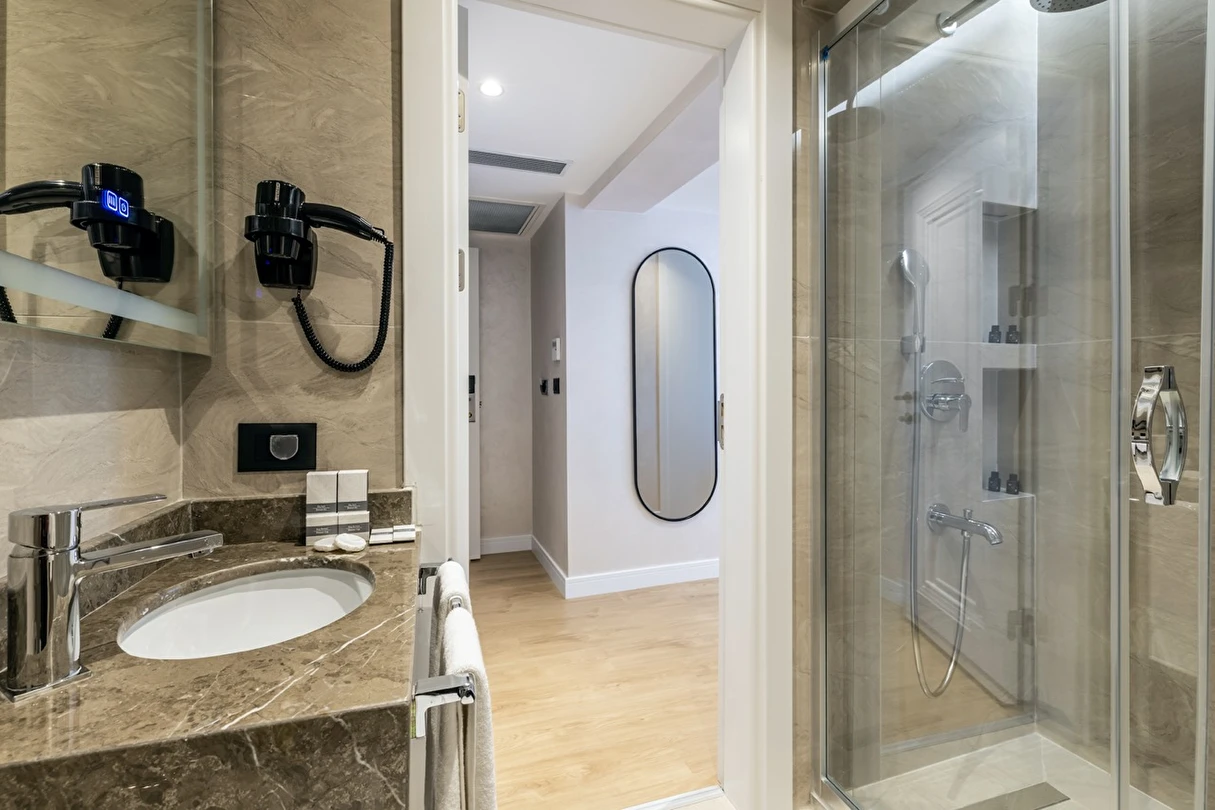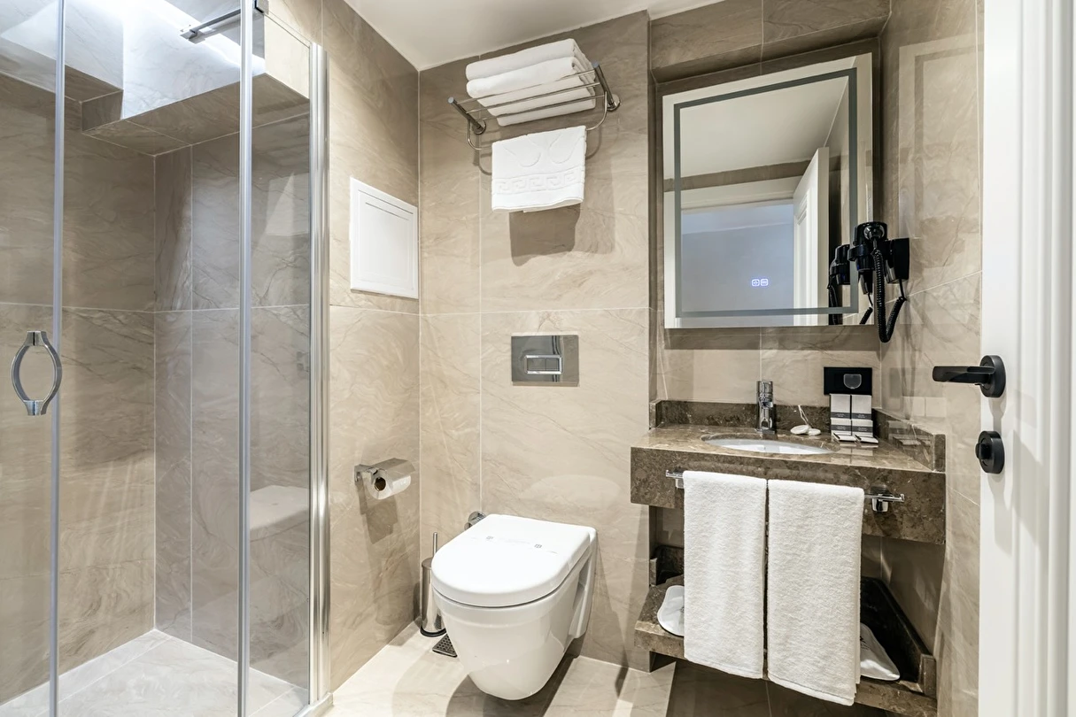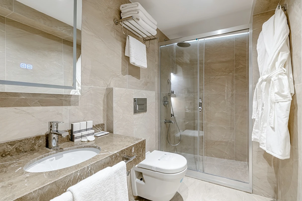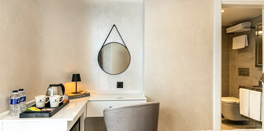 Burada odalar sadece birer konaklama alanı değil; bir ruh hâlidir.22–29 m² arasında değişen, incelikle tasarlanmış yaşam alanlarında ışık yumuşakça duvarlara yayılır. French ve Twin yatak seçenekleriyle her detay konforu fısıldar. İki kişilik odalarda sade bir şıklık, üç kişilik seçeneklerde paylaşılmış anların sıcaklığı saklıdır. Superior odalardaki oturma grupları ise günü yavaşlatmak için tasarlanmış küçük bir sahne gibidir; bir fincan kahve, bir kitap, bir İstanbul akşamı…