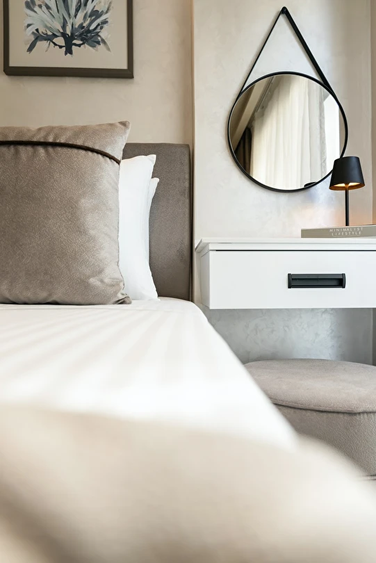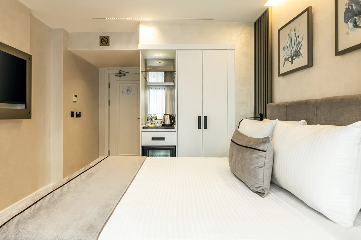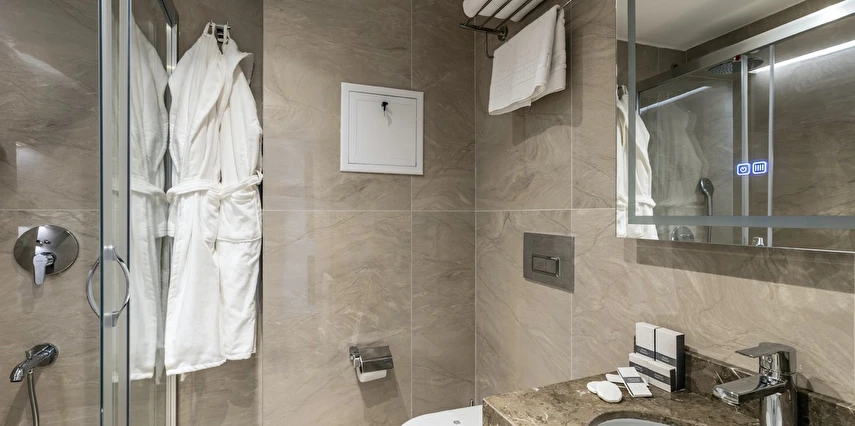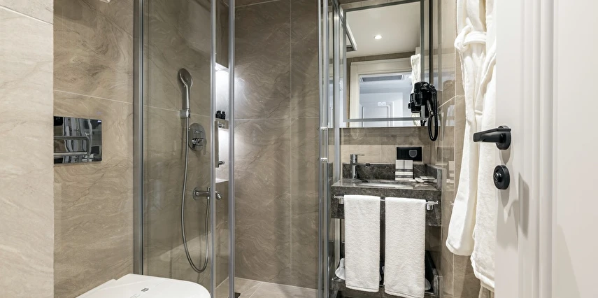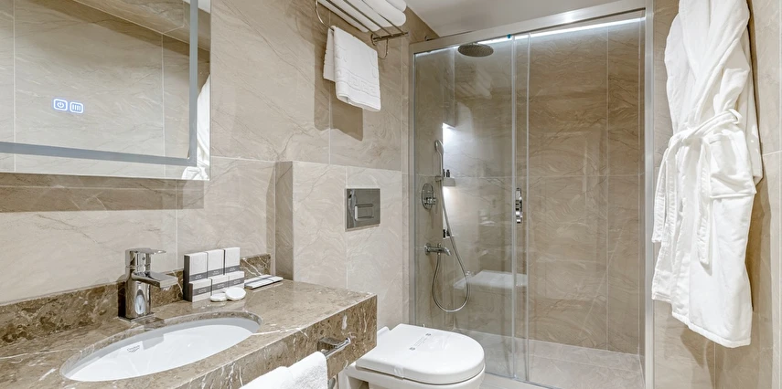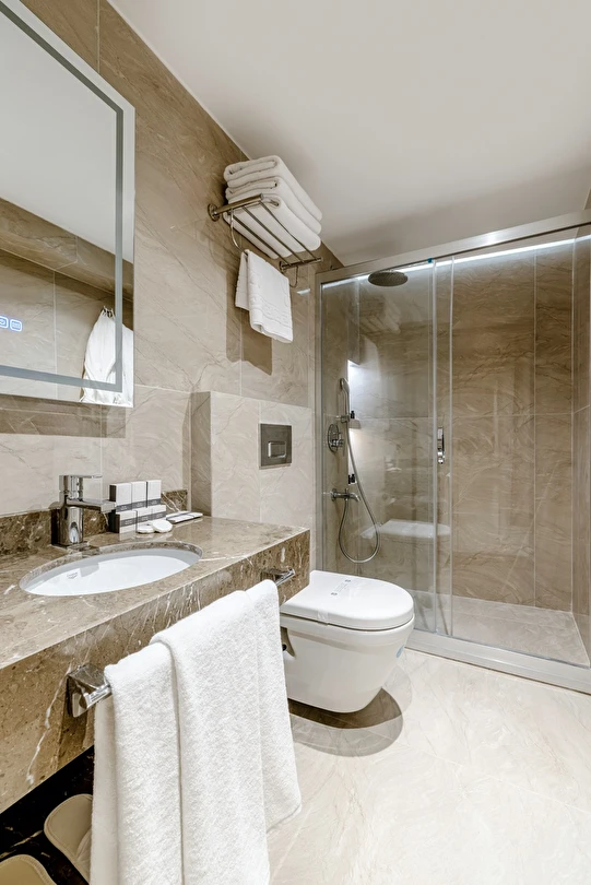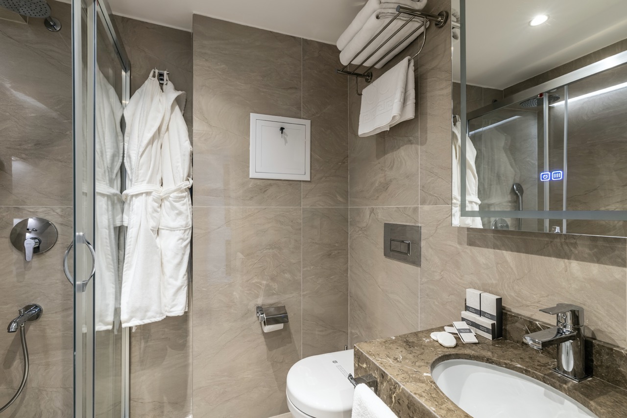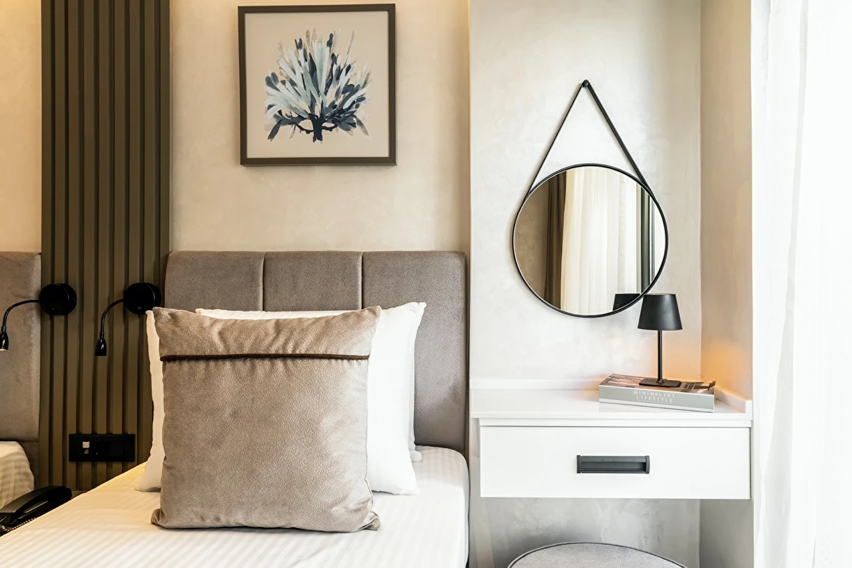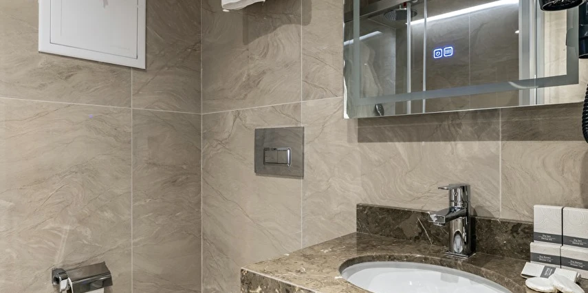 Burada odalar sadece birer konaklama alanı değil; bir ruh hâlidir.22–29 m² arasında değişen, incelikle tasarlanmış yaşam alanlarında ışık yumuşakça duvarlara yayılır. French ve Twin yatak seçenekleriyle her detay konforu fısıldar. İki kişilik odalarda sade bir şıklık, üç kişilik seçeneklerde paylaşılmış anların sıcaklığı saklıdır. Superior odalardaki oturma grupları ise günü yavaşlatmak için tasarlanmış küçük bir sahne gibidir; bir fincan kahve, bir kitap, bir İstanbul akşamı…