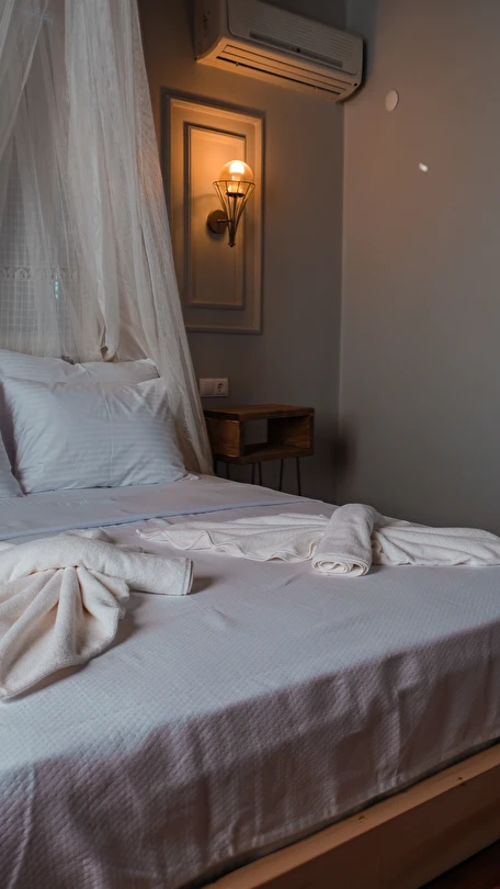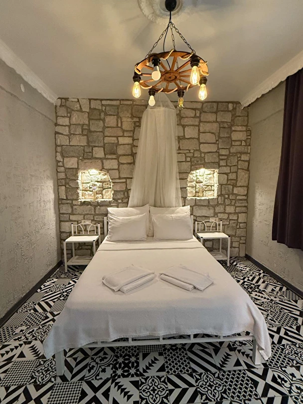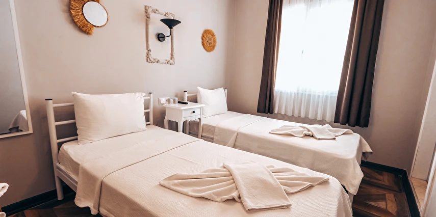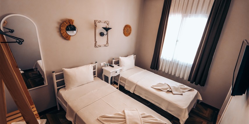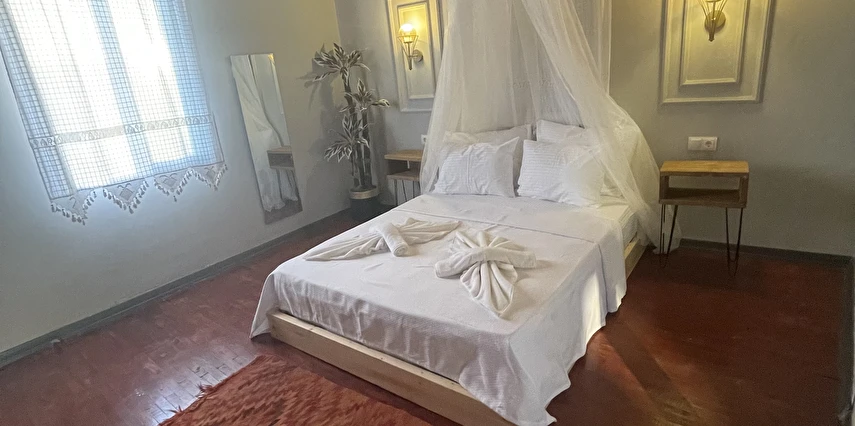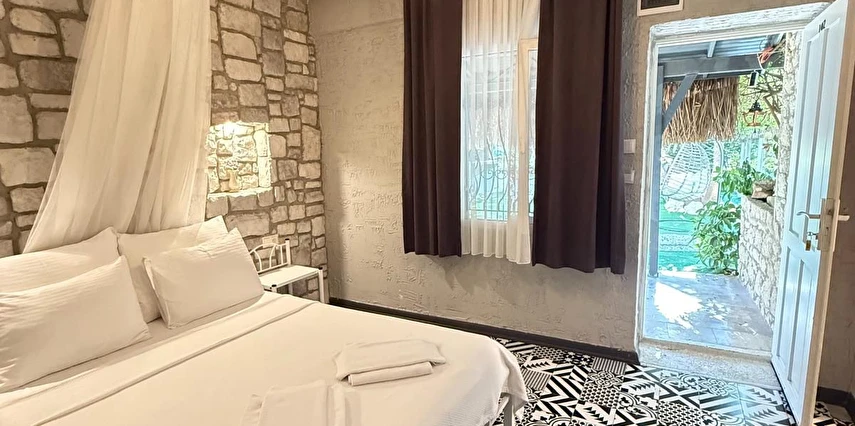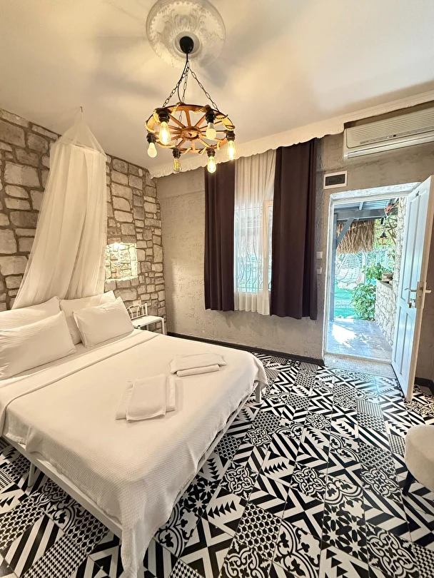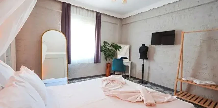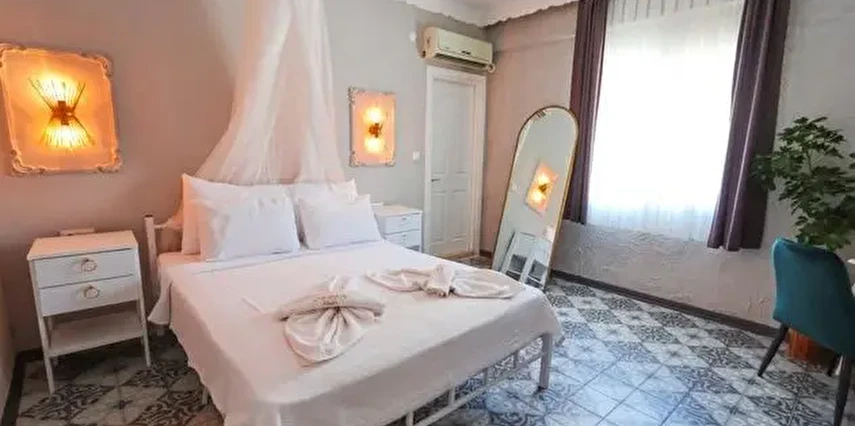 Alaçatı çarşısı içinde bulunan 9 odalı otelimizde yenilenmiş tarzı ve işletmesiyle her isteğe uygun oda bulunmaktadır. Sabahları kuş sesleriyle uyanıp geniş ve konforlu yeşillikler içerisindeki bahçemizde, her güne özel olarak çeşitli lezzetlerle sunulan serpme kahvaltınızı huzur içinde yapıp, meşhur Alaçatı çarşısında gezebilir ve Çeşme'nin eşsiz güzellikteki koylarında güneşlenebilirsiniz. Tatiliniz boyunca size iyi zaman geçirebilmeniz için tatil planlamanıza yardımcı olabiliriz.