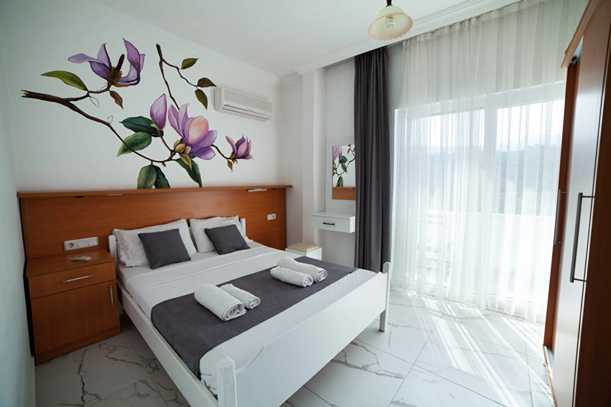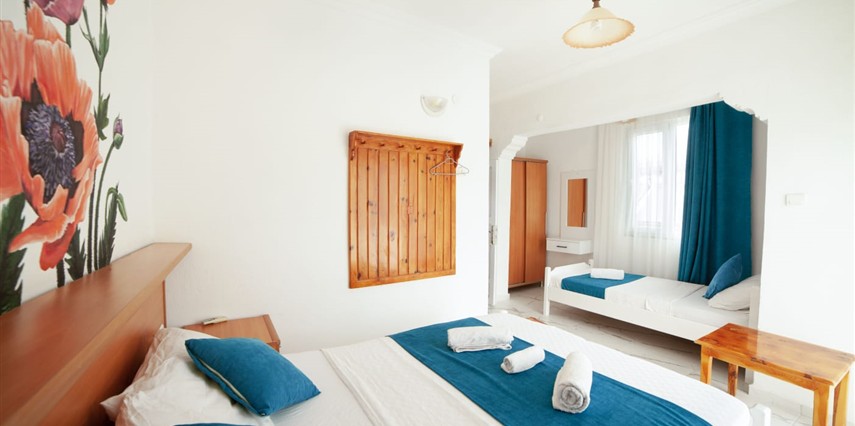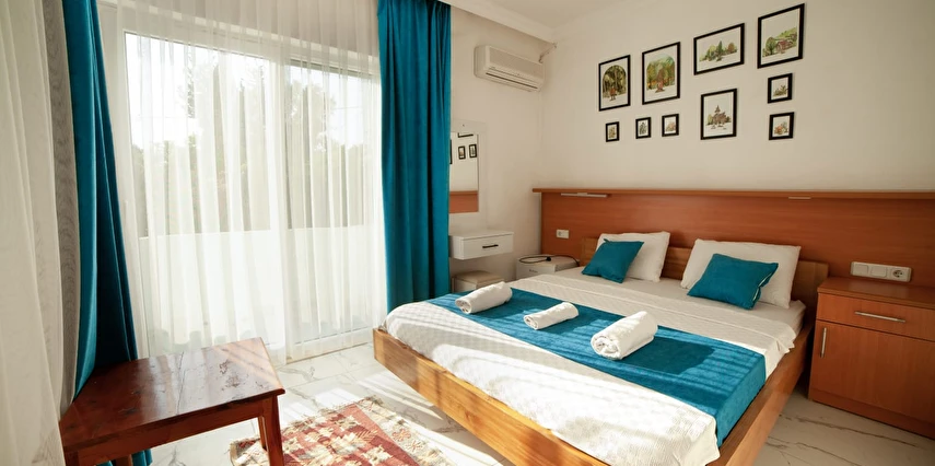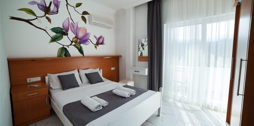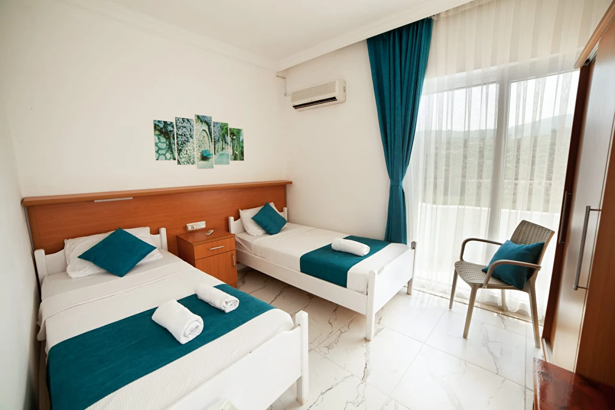 Tesis, aile işletmesi anlayışıyla hizmet verirken tatilciler için rahat ve konforlu bir konaklama imkânı sunar. Klimalı standart odalar ve apart daireler gibi farklı konaklama seçeneklerine sahip olan tesis, her sabah muhteşem manzara eşliğinde açık büfe kahvaltı imkânı sağlar. Odalarda balkon/veranda, özel banyo ve temel ihtiyaçları karşılayan donanımlar bulunur.