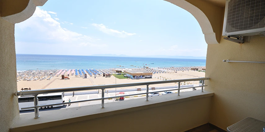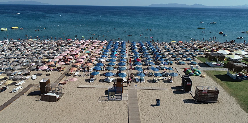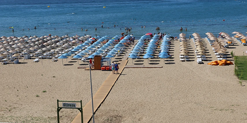 Plajda şezlong, şemsiye ve minder ücretsizdir.