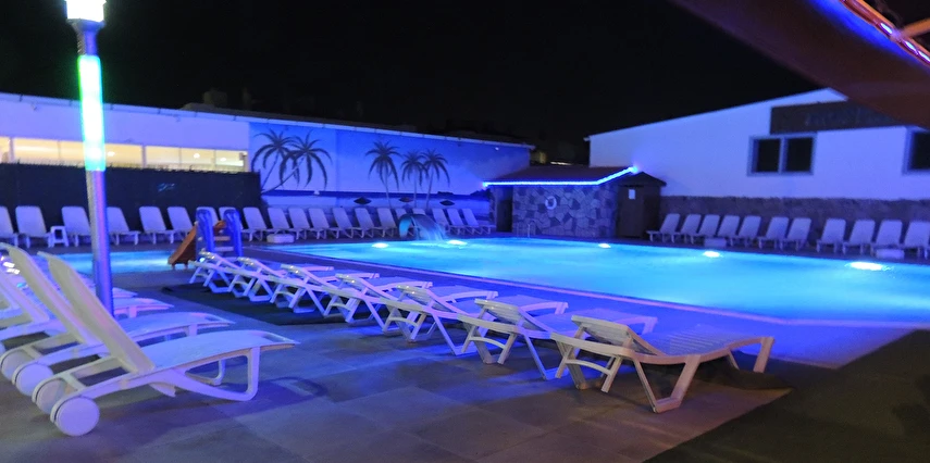 Çocuk havuzunda çocuklara özel tek bantlı su kaydırağı mevcuttur.