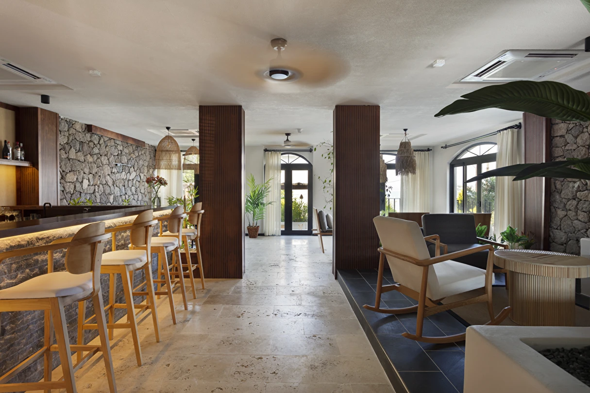Doğadan ilham alan otelimiz, iç ve dış arasındaki sınırı, yumuşak doğal tonlar ile plajı ve ormanı çağrıştıran rustik dokularla harmanlanıyor.