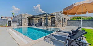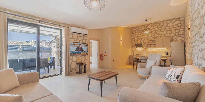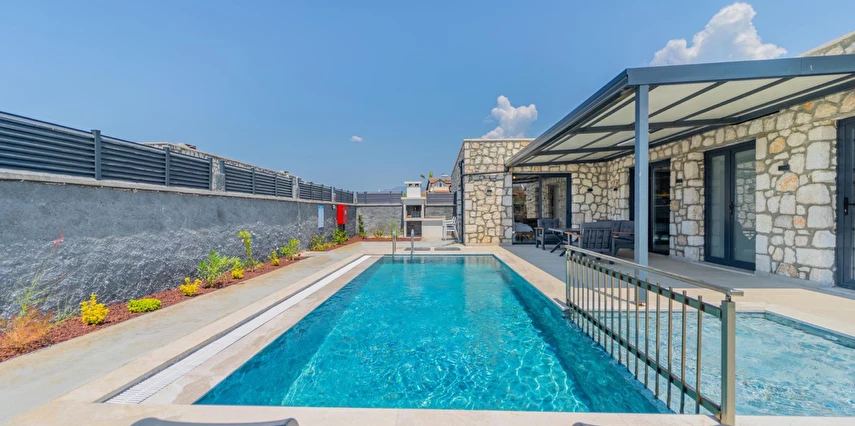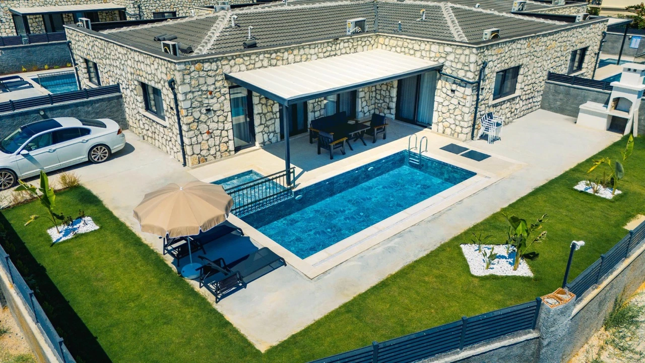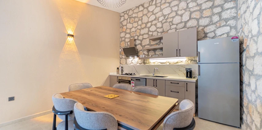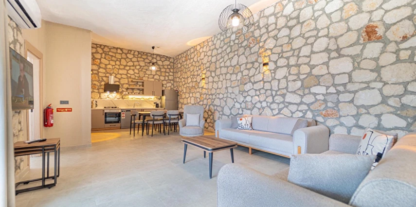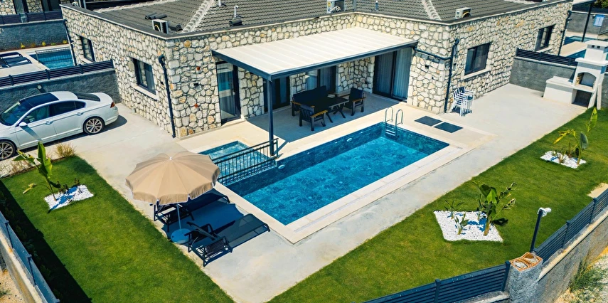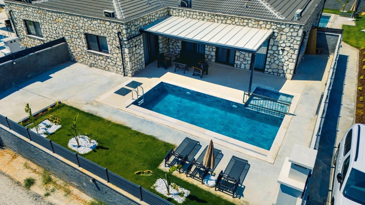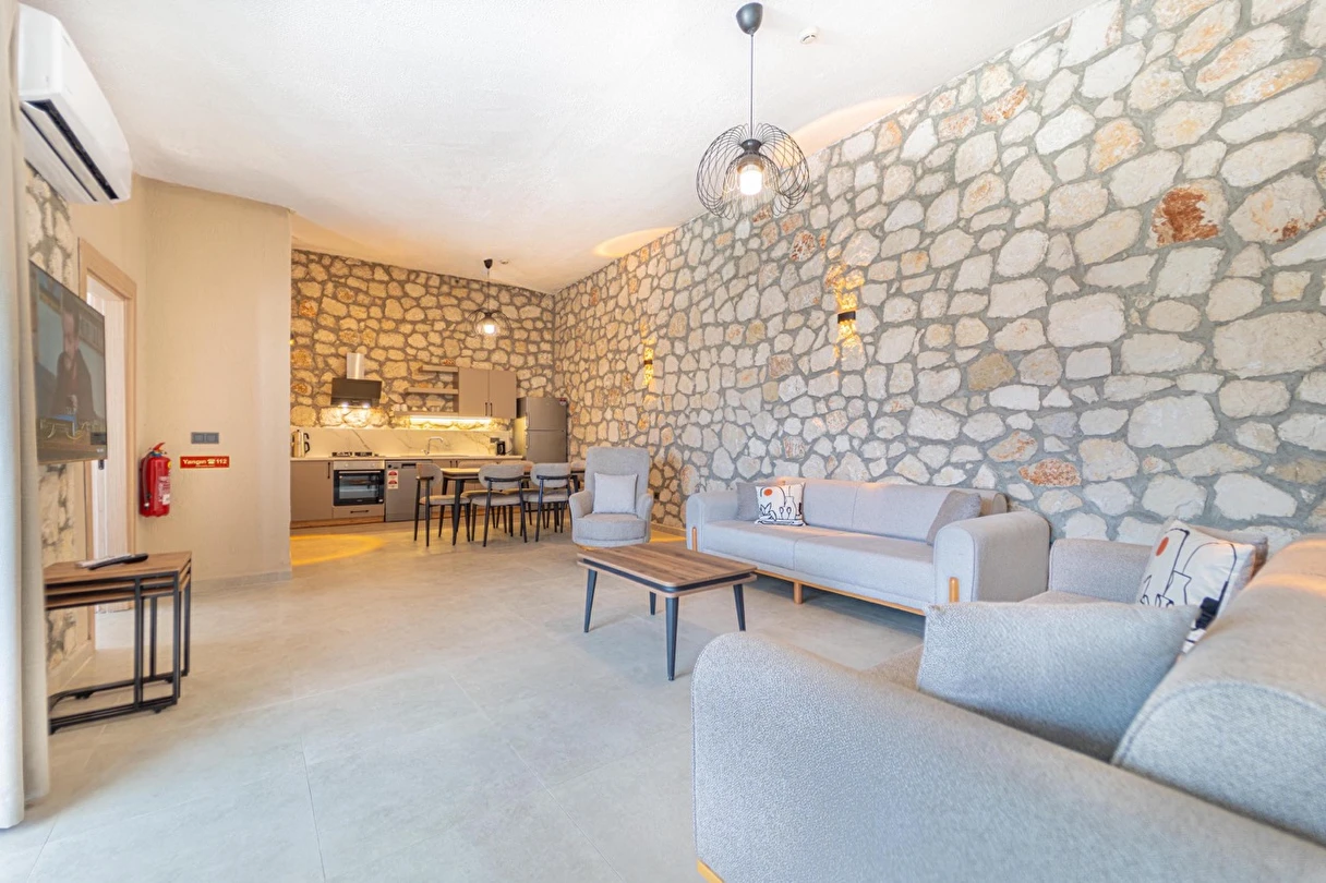 Fethiye Çalış Plajı’na sadece 150 metre uzaklıkta, taş mimarinin estetiğini modern konforla buluşturan 2+1 özel villalar. Özel bahçe, havuz, garaj ve tam donanımlı mutfak ile her mevsim huzurlu ve keyifli bir tatil sizi bekliyor.