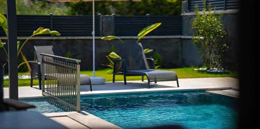 Her villanın kendine ait giriş kapısı, özel garajı, barbekü alanı ve yeşil bahçesi vardır. Gün batımında bahçenizde oturup gökyüzünün renklerini izleyebilir, açık havuzda suyun berrak serinliğine kendinizi bırakabilirsiniz. Üstelik villalarımız, Fethiye’nin en uzun plajı olan Çalış Plajı’na sadece 150 metre mesafededir.