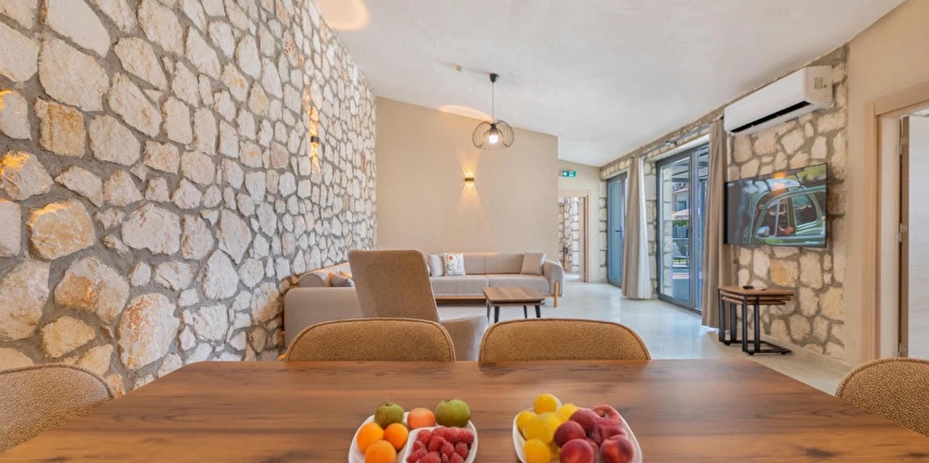Taş duvarların arasından süzülen gün ışığı, odalara yumuşak bir altın tonuyla dokunur… Her köşesinde özenin, inceliğin ve zarafetin hissedildiği Zora Beyaz Taş Villaları, huzuru ve konforu aynı çatı altında buluşturur.
